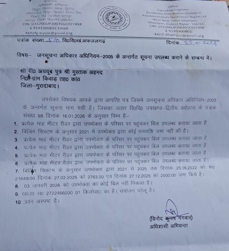 आरटीआई की धज्जियां उड़ाता विद्युत विभाग, गलत पते पर भेजकर दी गई मनगढ़ंत सूचनाएं