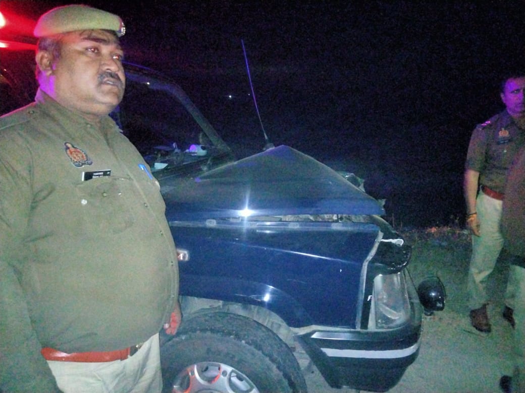 कोतवाली अफजलगढ़ प्रभारी की गाड़ी को गाने से भरे ट्रक ने मारी टक्कर