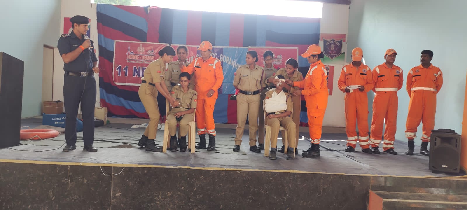 फंसी बाहरी वस्तु के निकालने के तरीके शारीरिक चोटों का अस्पताल उपचार, तत्कालिक स्ट्रेचर बनाना, लिफ्टिंग और मूविंग के तरीके, एवं विभिन्न जल बचाव तकनीके जल संरक्षण तकनीकें, सड़क सुरक्षा, हीट स्ट्रोक ,दामिनी एप मौसम ऐप भूकंप ऐप इंस्टॉलेशन और प्रयोग के बारे में बताया गया इस अवसर पर रीजनल रिस्पांस सेंटर (आरआरसी) गोरखपुर के निरीक्षक राम यज्ञ शुक्ला के साथ एनडीआरएफ के अन्य रेस्क्यूर भी मौजूद रहे। 15 गर्ल्स से कर्नल ए.प सिंह एन .सी.सी.मेजर महुवा भट्टाचार्य,सूबेदार मेजर सीके मंडल एवं एनसीसी के दो सौ पचास गर्ल्स कैडेट मौजूद रहे।
