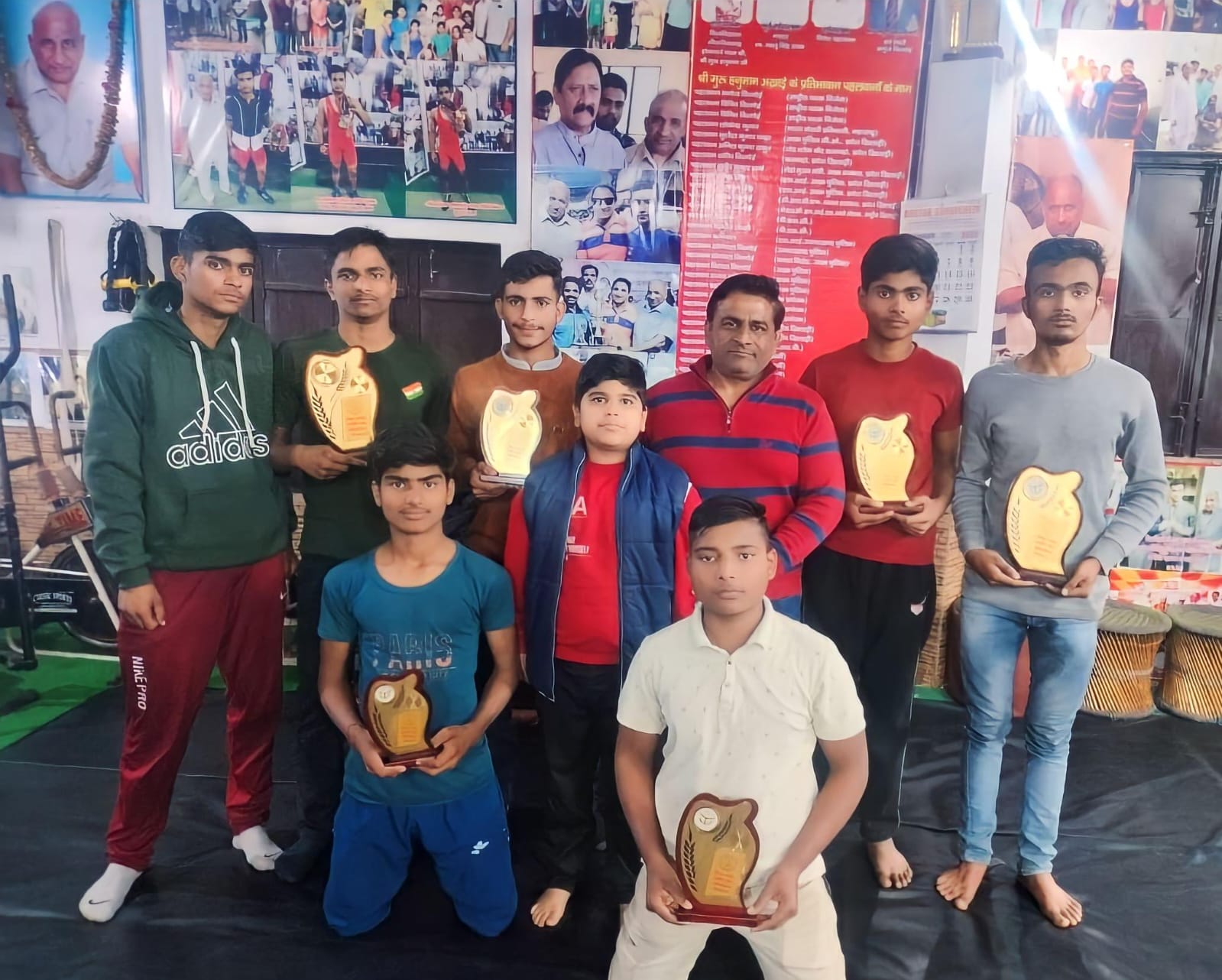 कांठ,मुरादाबाद (परिपाटी न्यूज़)। युवा कल्याण एवं प्रादेशिक विकास दल विभाग मुरादाबाद के तत्वाधान में जिला स्तरीय कुश्ती प्रतियोगिता का आयोजन नेताजी सुभाष चंद्र बोस सोनकपुर स्टेडियम मुरादाबाद में हुआ। उक्त प्रतियोगिता में श्री गुरु हनुमान अखाड़ा कांठ के छः पहलवानों ने प्रतिभाग कर निम्न वर्गो में स्थान / पदक प्राप्त किया। नकुल चौहान 55 किलोग्राम भार वर्ग प्रथम स्थान ,लक्की कुमार 60 किलोग्राम भार वर्ग प्रथम स्थान,दीपांशु पाल 60 किलोग्राम द्वितीय स्थान, दीक्षित पवार 51 किलोग्राम द्वितीय स्थान , अभिजीत बिश्नोई 55 किलोग्राम द्वितीय स्थान , हर्ष पवार 51 किलोग्राम तृतीय स्थान ,उपरोक्त प्रथम स्थान प्राप्त करने वाले पहलवान उत्तर प्रदेश कुश्ती प्रतियोगिता के चयन हेतु जोन कुश्ती प्रतियोगिता बरेली में प्रतिभा करेंगे।