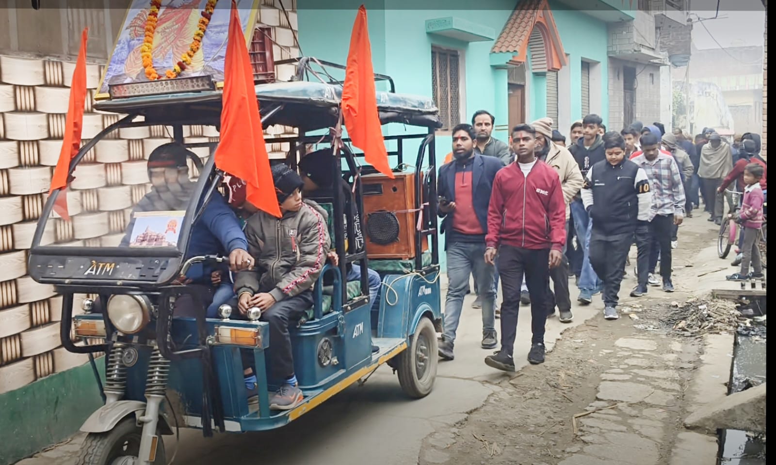 राजा का ताजपुर, बिजनौर (परिपाटी न्यूज़)। राष्ट्रीय स्वयंसेवक संघ में सभी हिंदूवादी संगठनों के द्वारा प्रभु श्री राम की नगरी अयोध्या से आए पूजित अक्षत को गौरी शंकर मंदिर से पूरे नगर में प्रभात फेरी निकाल कर घर-घर वितरित किया। 22 जनवरी को अयोध्या में श्री राम जी के मंदिर में