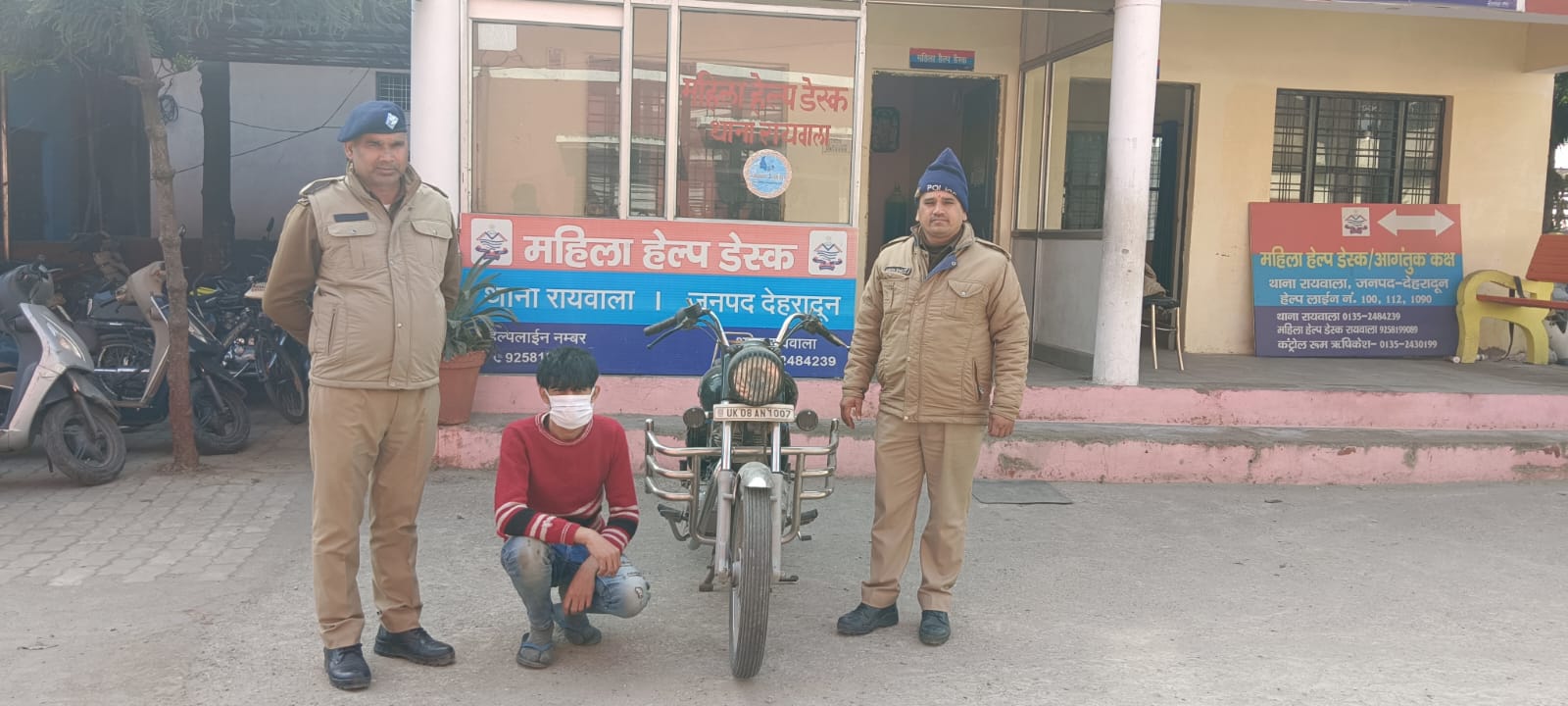 05.01.2024 को अपने अवास गोकुल धाम कालौनी हरिपुरकला के पास किसी अज्ञात व्यक्ति द्वारा उसके वाहन मो0सा0 बुलट नं0 UK08-AN-1007 का लोक तोडकर चोरी चली गयी है। प्रार्थना पत्र पर प्रभारी निरीक्षक रायवाला महोदय द्वारा तत्काल कार्यवाही करते हुए थाना रायवाला पर मु0अ0स0 – 03/24 धारा 379 भादवि बनाम अज्ञात का अभियोग पंजीकृत कर। अभियुक्त की तलाश /गिरफ्तारी / बरामदगी हेतु टीम गठित कर आवश्यक दिशा निर्देश दिये गये । रायवाला पर गठित पुलिस टीम द्वारा त्वरित कार्यवाही करते हुये हरिपुर कला क्षेत्रान्तर्गत सीसीटीवी फुटेज व मुखबीर की सूचना पर 10 घंटे के अन्दर दिनांक 07.01.2024 को प्राईमरी स्कूल हरिपुरकला के पास से बुलट चोरी करने वाले अभियुक्त को चोरी की मो0सा0 बुलट नं0 UK08-AN-1007 के साथ गिफ्तार किया गया । गिरफ्तार अभियुक्त का नाम , क्षितीज शर्मा पुत्र मनोज शर्मा निवासी गली न0 06 गोल कोठी के पास हरिपुरकला रायवाला उम्र-21 वर्ष ,बरामदगी का विवरण, चोरी की गयी बुलेट संख्या UK08AN-1007 बरामद । (अनुमानित किमत-130000/-रुपये),पुलिस टीम ,अपर उ0नि0 अरुण कुमार ,थाना रायवाला,हे0कानि0 336 शहवान अली ,थाना रायवाला, कानि0 755 कृष्ण प्रकाश ,थाना रायवाला बरामदगी के आधार मुकदमा उपरोक्त मे धारा 411 भादवि की बढोत्तरी की गयी । अभियुक्त के आपराधिक इतिहास की जानकारी भी की जा रही है। अभियुक्त को समय से मा0न्यायालय पेश किया जा रहा है ।