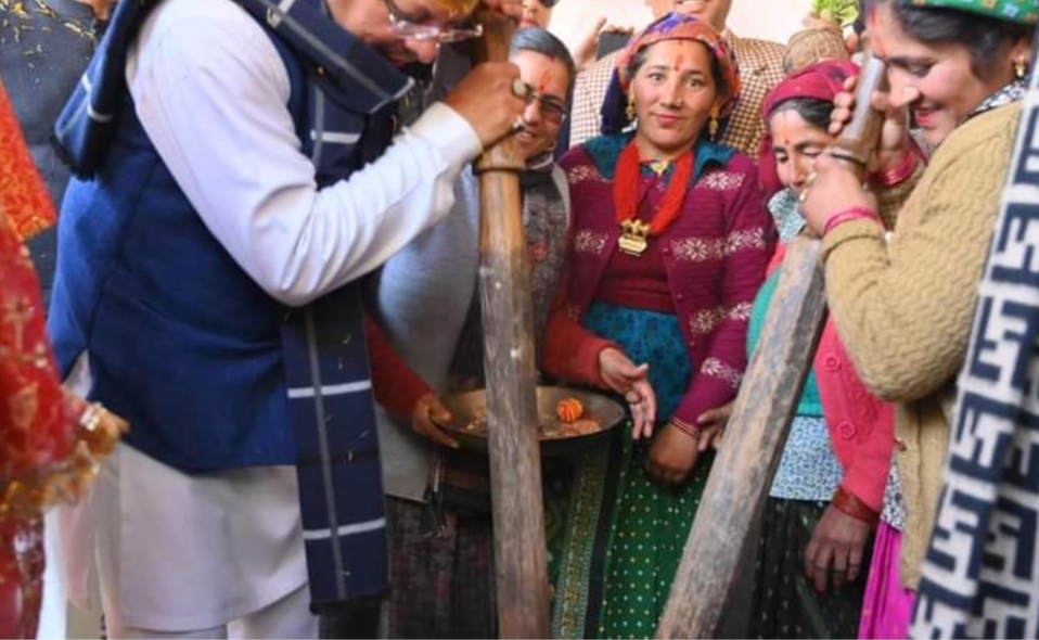 महोत्सव में वन डिस्ट्रिक वन प्रोडक्ट में हाल ही में देश में दूसरे स्थान का सम्मान पाने वाले लाल धान की जानकारी ली। इस दौरान मुख्यमंत्री को लाल धान का उत्पादन करने वाली महिलाओं ने लाल धान की बाली भेंट की। मुख्यमंत्री ने महिलाओं के साथ लाल धान की कुटाई पारंपरिक ओखली यानी उलख्यारे में गिंज्याली (मूसल) थामकर की । साथ ही लाल धान के चूड़ा बनाने की जान