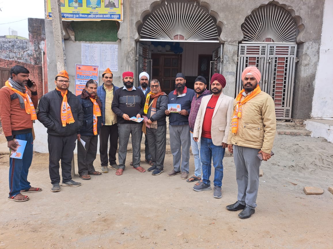 पहुंचाए गए और अयोध्या धाम पहुंच कर प्रभु श्री राम के दर्शन करने का निमंत्रण दिया। इस अवसर पर राष्ट्रीय स्वयंसेवकों ने अयोध्या के इतिहास पर प्रकाश डालते हुए प्रभु श्री राम के आदर्श पर चलने का सभी से अनुरोध किया। कार्यक्रम में उपस्थित डीसीएफ के चेयरमैन पुष्पेंद्र सिंह शेखावत, ताजपुर से खंड कार्यवाह जितेंद्र चौहान,सरदार गुरमीत सिंह, सरदार हरवेंदर सिंह जोहरी,गजेंद्र सिंह सहित कई ग्रामवासी भी उपस्थित रहे।