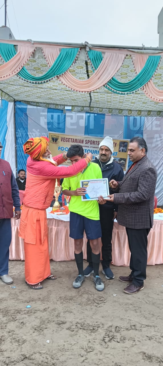 गौरतलब है कि वेजीटेरियन स्पोर्ट्स सोसायटी, जगजीतपुर , हरिद्वार के तत्वावधान में अंडर 14और अंडर 17 आयू वर्ग दो दिवसीय फूटबाॅल टुर्नामेंट 8और 9 जनवरी को फूटबाॅल ग्राउंड जगजीतपुर में आयोजित किया गया। कार्यक्रम में मुख्य अतिथि के तौर पर उपस्थित गंगा सभा के अध्यक्ष पंडित नितिन गौतम ने सभी खिलाड़ियों को पुरस्कार करते हुए कहा कि वेजीटेरियन स्पोर्ट्स क्लब स्थानीय प्रतिभाओं को निखारने में महत्वपूर्ण भूमिका का निर्माण कर रहा है। जगजीतपुर क्षेत्र में रहने वाले बच्चों को उच्च स्तर कु