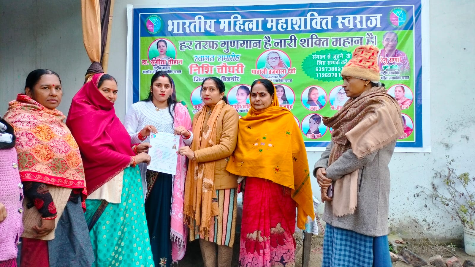 बिजनौर (परिपाटी न्यूज़)। भारतीय महिला महाशक्ति स्वराज मिशन विस्तार के तहत नजीबाबाद में एक सभा का आयोजन किया गया जिसमें सभा की मुख्य अतिथि रेनू राणा, राष्ट्रीय महासचिव के द्वारा निशि चौधरी को नियुक्ति पत्र देकर जिला अध्यक्ष बिजनौर के पद पर मनोनीत किया गया और शुभकामनाओं सहित उनके उज्जवल भविष्य की कामना करते हुए सभी से टीम से जुड़ने का आह्वान किया गया और सभी को संगठित होने के लाभ बताये और ज्यादा से ज्यादा महिलाओं को टीम से जोड़ने पर ज़ोर दिया।