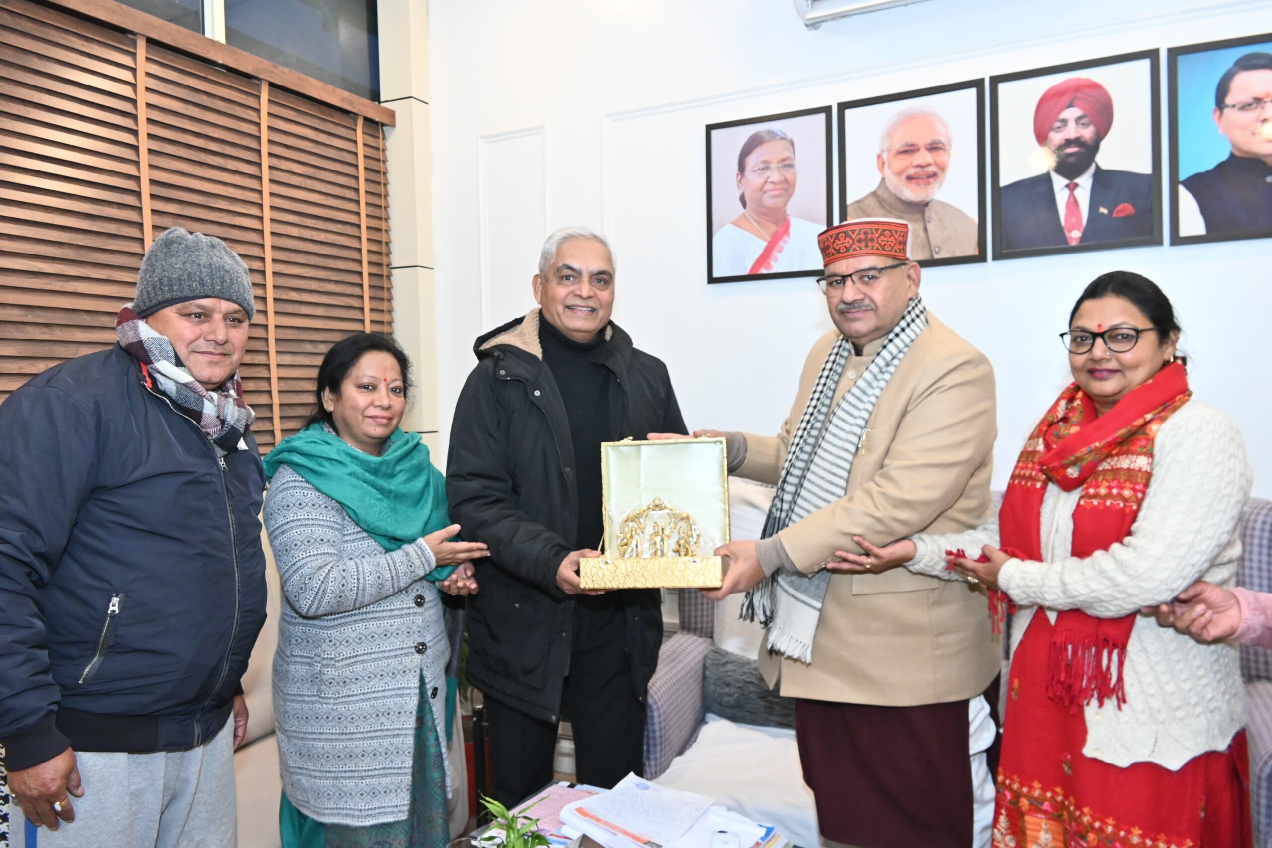मसूरी देहरादून(परिपाटी न्यूज़)। मंगलवार को देहरादून के न्यू कैंट रोड़ स्थित कैम्प कार्यालय में भारतीय सर्वेक्षण विभाग के सर्वेयर जनरल हितेश केएस मकवाना ने प्रदेश के कृषि मंत्री गणेश जोशी से शिष्टाचार भेंट की। इस दौरान कैबिनेट मंत्री गणेश जोशी ने सर्वेयर जनरल को श्रीराम दरबार की प्रतिकृति भेंट किया।