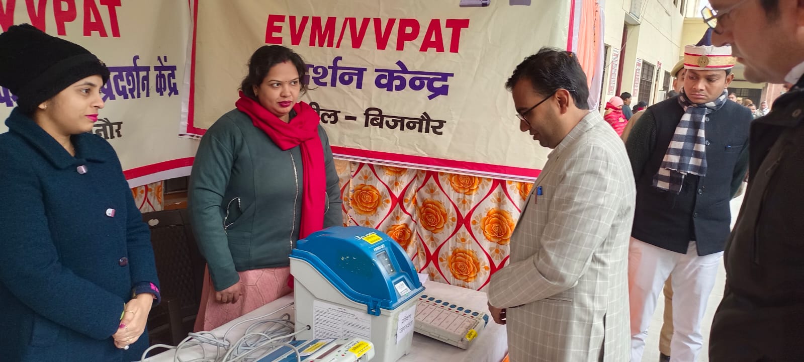 बिजनौर(परिपाटी न्यूज़)। जिलाधिकारी अंकित कुमार अग्रवाल ने तहसील बिजनौर में आयोजित सम्पूर्ण समाधान दिवस के अवसर पर भारत निर्वाचन आयोग द्वारा तहसील परिसर में बनाये गये ईवीएम एवं वीवीपैट प्रशिक्षण जागरूकता एवं प्रदर्शन केंद्र का निरीक्षण किया।