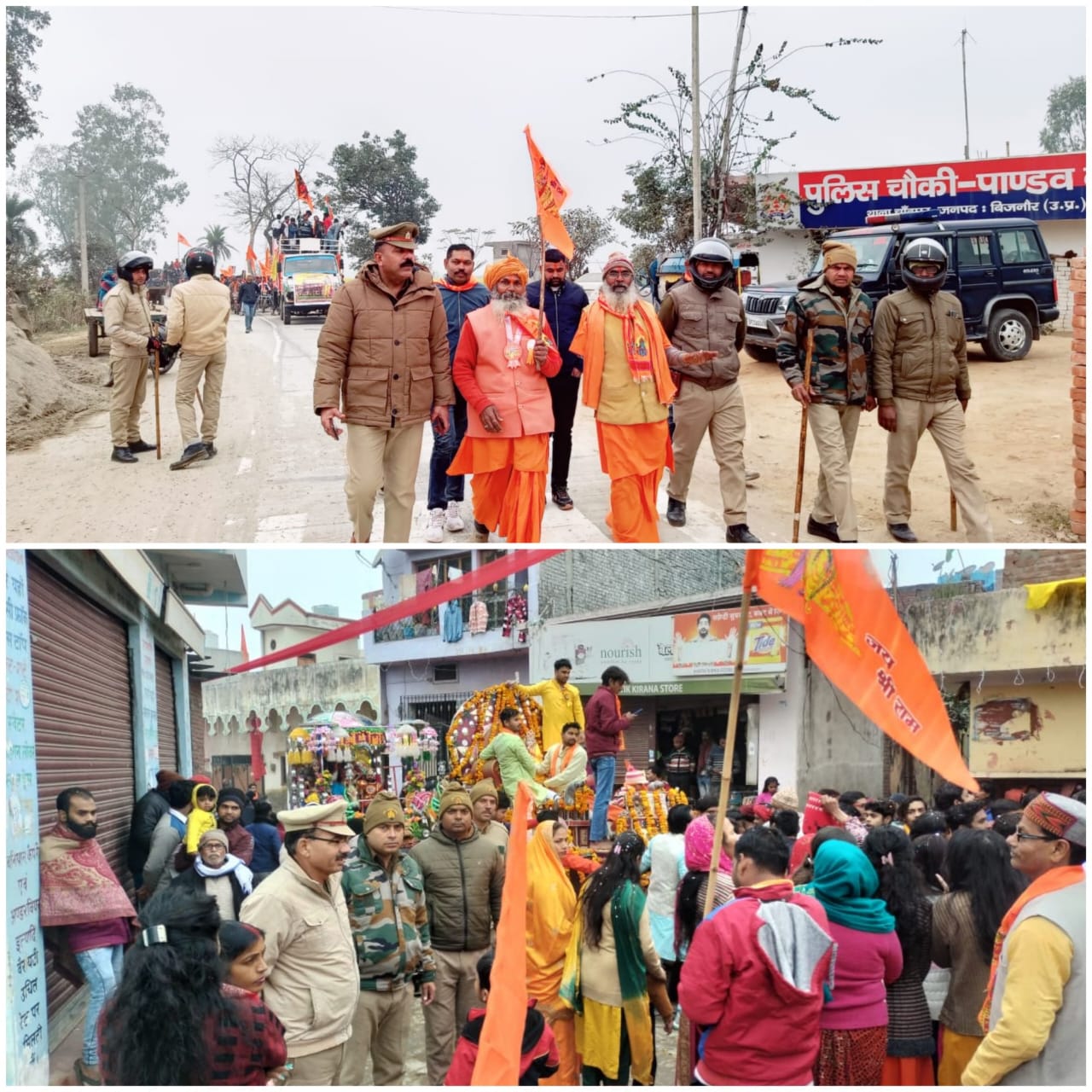 मिठाइयां बांटी और राम नाम जय घोष करते हुए पूरे क्षेत्र में राम की झांकी को घुमाया तथा थाना चांदपुर एस एच ओ संजय कुमार द्वारा भारी पुलिस दल के साथ अयोध्या जी में श्री राम लाल प्राण प्रतिष्ठा कार्यक्रम के दृष्टिगत अपने-अपना क्षेत्र अंतर्गत सतर्क दृष्टि से ग्राम सुजालपुर खादर में शोभा यात्रा को स कुशल पूर्ण कराया गया है।
