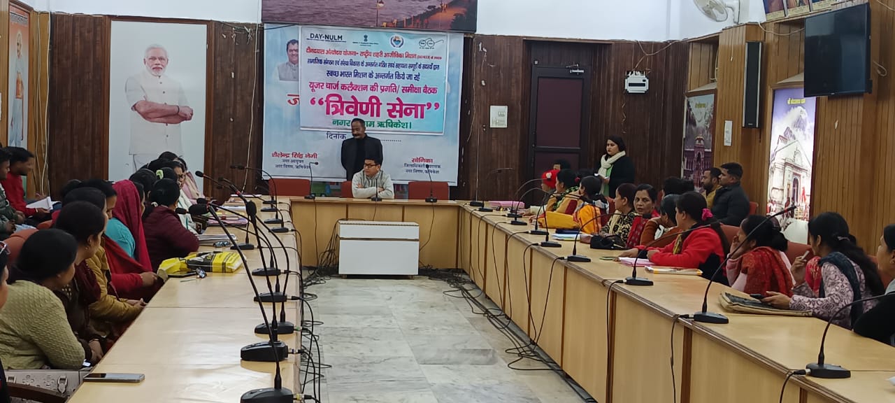 भागीदारी भी सुनिश्चित हो सके। अभी तक नगर निगम क्षेत्र की 28 स्वयं सहायता समूह को त्रिवेणी सेना में सम्मिलित किया गया है। उनके माध्यम से लगभग 300 से अधिक महिलाएं इसमें जुड़ी हुई है। विभिन्न स्वयं सहायता समूह के महिला अध्यक्ष एवं अन्य पदाधिकारी द्वारा अवगत कराया गया कि वे अगस्त 2023 से नगर निगम क्षेत्र ऋषिकेश में कार्य कर रही हैं। पहले उनकी प्रगति काफी कम थी और वह प्रतिमाह 6- 7 लाख रुपए की वसूली कर पाते थे लेकिन अब 18 से 20 लाख