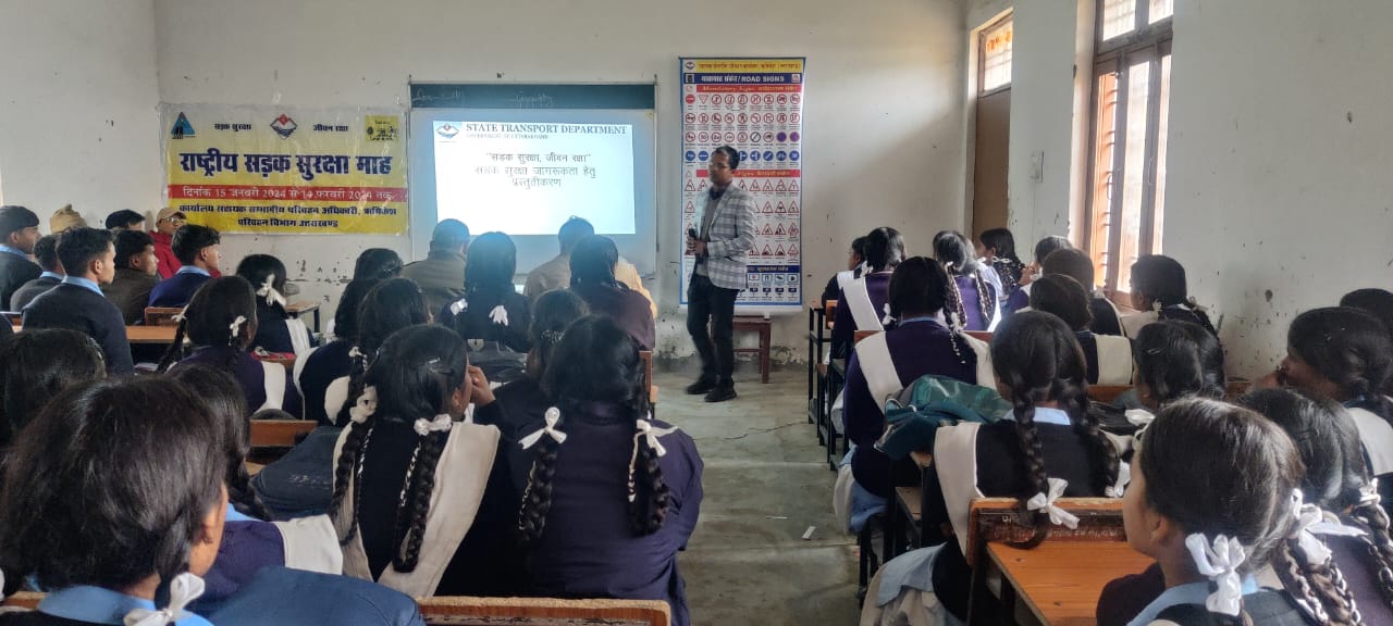 देहरादून (परिपाटी न्यूज)रायवाला दिनाँक 01-02-24 को सड़क परिवहन राजमार्ग मंत्रालय भारत सरकार के आदेशों के क्रम में दिनाँक 15-01-24 से14-02-24 तक चलने वाले सड़क सुरक्ष जीवन रक्षा कार्यक्रम के अंतर्गत परिवहन विभाग उत्तराखंड के दिशा निर्देशानुसार ,परिवहन विभाग ऋषिकेश द्वारा ARTO प्रवर्तन मोहित कोठारी जी के नेतृत्व में परिवहन विभाग ऋषिकेश के प्रवर्त्तन अधिकारियों और कर्मचारियों द्वारा रायवाला प्रतीतनगर स्थित सत्येस्वरी देवी मेमोरियल स्कूल व छिद्रवाला स्थित राजकीय इंटर कालेज में सड़क सुरक्षा जीवन रक्षा जन जागरूकता कार्यक्रम के अंतर्गत कार्यशाला का आयोजन किया गया। इस अवसर पर परिवहन विभाग ऋषिकेश द्वारा छात्र छात्राओं को पोस्टर, बैनर, पम्पलेट ओर इलेक्ट्रॉनिक उपकरणों की मदद से यातायात व सड़क सुरक्षा नियमों की जानकारी दी गई। ARTO प्रवर्त्तन मोहित कोठारी के द्वारा छात्र छात्राओं को सम्बोधित करते हुए नियमों के पालन व सड़क सुरक्षा पर प्रकाश डालते हुए कई अमूल्य जानकारियाँ प्रदान की गई और एक सुरक्षित सड़क संस्कृति विकसित करने हेतु छात्र छात्राओं से आह्वान किया। सड़क सुरक्षा के 4 E’s (Engineering, Education, Enforcement,