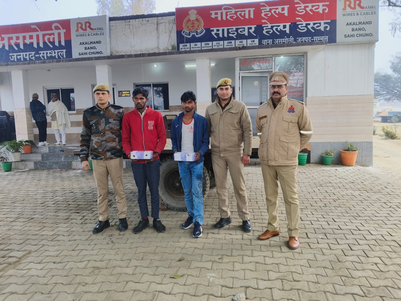 जिसमें परिवार वालो ने मेहंदी हसन की किसी अज्ञात व्यक्ति द्वारा गोली मारकर हत्या कर शव को खानपुर बंद के एक खेत मे डाल देने व ट्रैक्टर टिपलर को गायब कर देने की रिपोर्ट थाना असमोली में दर्ज कराई थी। पुलिस अधीक्षक ने हत्या के खुलासे के लिए टीमों का गठन किया था। हत्या के खुलासे और हत्यारों को पकड़ने मे लगी। पुलिस ने मुखबिर की सूचना पर थाना असमोली पुलिस ने कपिल पुत्र बाबूराम और आशु पुत्र महावीर निवासी ग्राम खानपुर बंद को गिरफ्तार कर लिया गया। आरोपियों के पास दो तमंचे 315 बोर दो जिंदा कारतूस व टिपलर भी बरामद किया है।