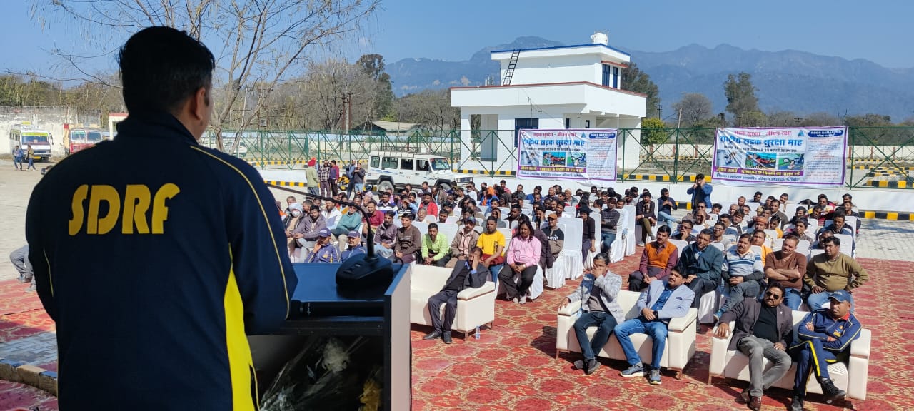 कार्यलय ऋषिकेश में आयोजन किया गया। कार्यक्रम में SDRF जॉलीग्रांट से निरीक्षक कवींद्र सजवाण, सब इंस्पेक्टर  विजेंद्र कुड़ियाल के साथ तकरीबन 10 कर्मियों द्वारा उपस्थित 170 चालक परिचालकों को फर्स्ट रिस्पांडर की भूमिका के बारे में विस्तार से समझाया गया। इस अवसर पर SDRF द्वारा दुर्घटना के समय जोखिम को कम करने में काम आने वाली सभी तकनीक जैसे दुर्घटना होने पर सीपीआर कैसे दें ,कैसे उन्हें तत्काल अस्पताल पहुंचाया जाए,वाहन में आग लगने पर कैसे बचाव किया जाए,कैसे उन्हें स्ट्रेचर पर