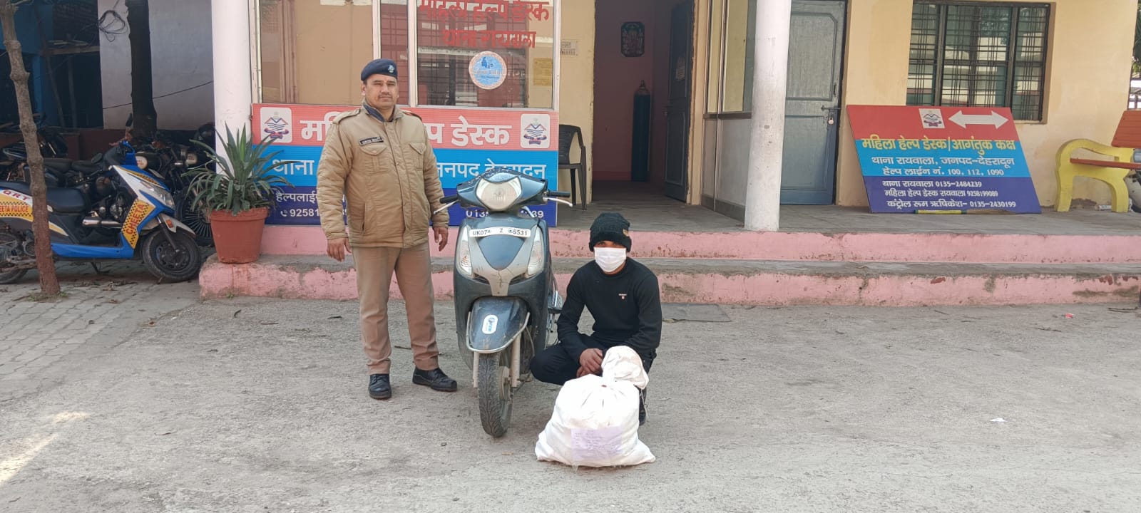 स्कूटी एवएटर बरामद होना । पुलिस टीम, कानि0 980 गोनी पुरी ,थाना रायवाला, कानि0 478 अनिरुद्ध , थाना रायवाला, जिसे वह अवैध रुप से परिवहन कर रहा था । अभियुक्त से बरामदगी होने पर अभियुक्त को कारण गिरफ्तारी बताते हुए अभियुक्त को गिरफ्तार कर वाहन को कब्जे पुलिस लिया गया । गिरफ्तार अभियुक्त के विरुद्ध थाना रायवाला पर मु0अ0स0-25/2024 धारा 60/72 आबकारी एक्ट के तहत अभियोग पंजीकृत किया । आपराधिक इतिहास की जानकारी की जा रही है।