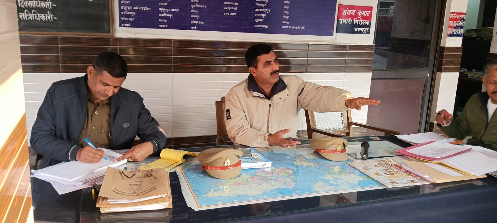 चांदपुर बिजनौर ( परिपाटी न्यूज) जिला बिजनौर के तहसील चांदपुर के थाना कोतवाली चांदपुर में आसपास के क्षेत्र से गणमान्य लोगों को बुलाकर थाना प्रभारी राजेश कुमार ने एक सभा का आयोजन किया ।जिसमें काफी संख्या में लोगों ने भाग लिया ।यह जनसभा हल्द्वानी में जो कृत्य हुआ है। उसी का संज्ञान लेते हुए इस सभा का आयोजन किया गया है । आने वाले त्योहारों को लेकर भी सभी से वार्तालाप की गई है ।तथा सभी को बरेली और हल्द्वानी जैसी घटनाओं का परिचय देते हुए बताया गया है। कि सभी लोग सामान्य तरीके से जिस प्रकार पहले से रहते आए हैं। इस प्रकार से प्रेम