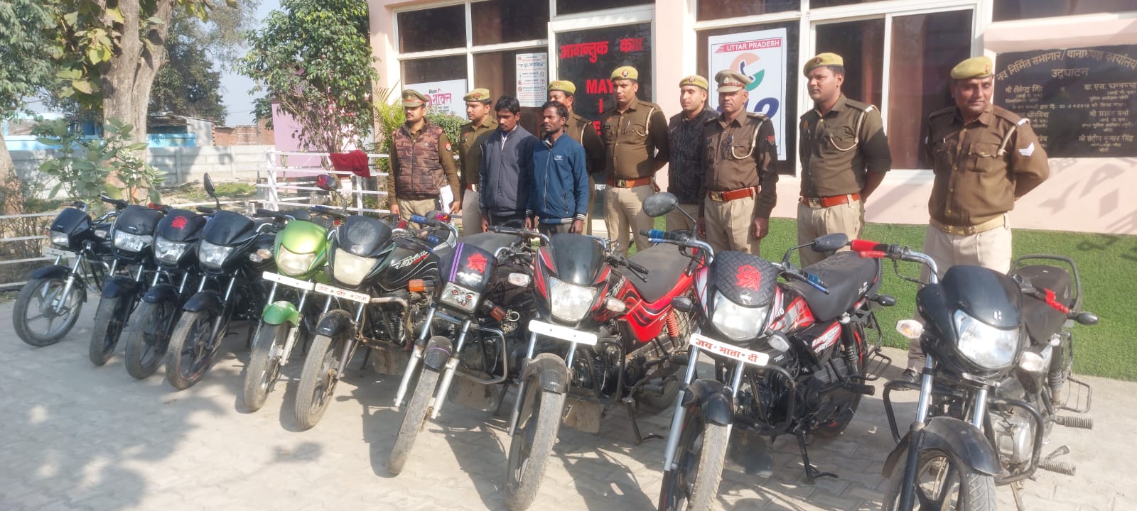 चोरी की घटनाओं मे संलिप्त तथा मोटर साईकिल चोरी कर नम्बर प्लेट बदलकर बेचने वाले 02 नफर अभियक्तों को गिरफ्तार किया गया जिनके कब्जे से चोरी की गयी 10 मोटर साईकिल बरामद की गयी उक्त गिरफ्तारी व बरामदगी के आधार पर थाना भीरा पर मु0अ0सं0 066/2024 धारा 411/413/414/420/467/468/ 471 भादवि व 41 द0प्र0सं0 पंजीकृत कर अभियुक्तों को न्यायिक हिरासत मे भेजा गया, आवश्यक विधिक कार्यवाही की जा रही है ।