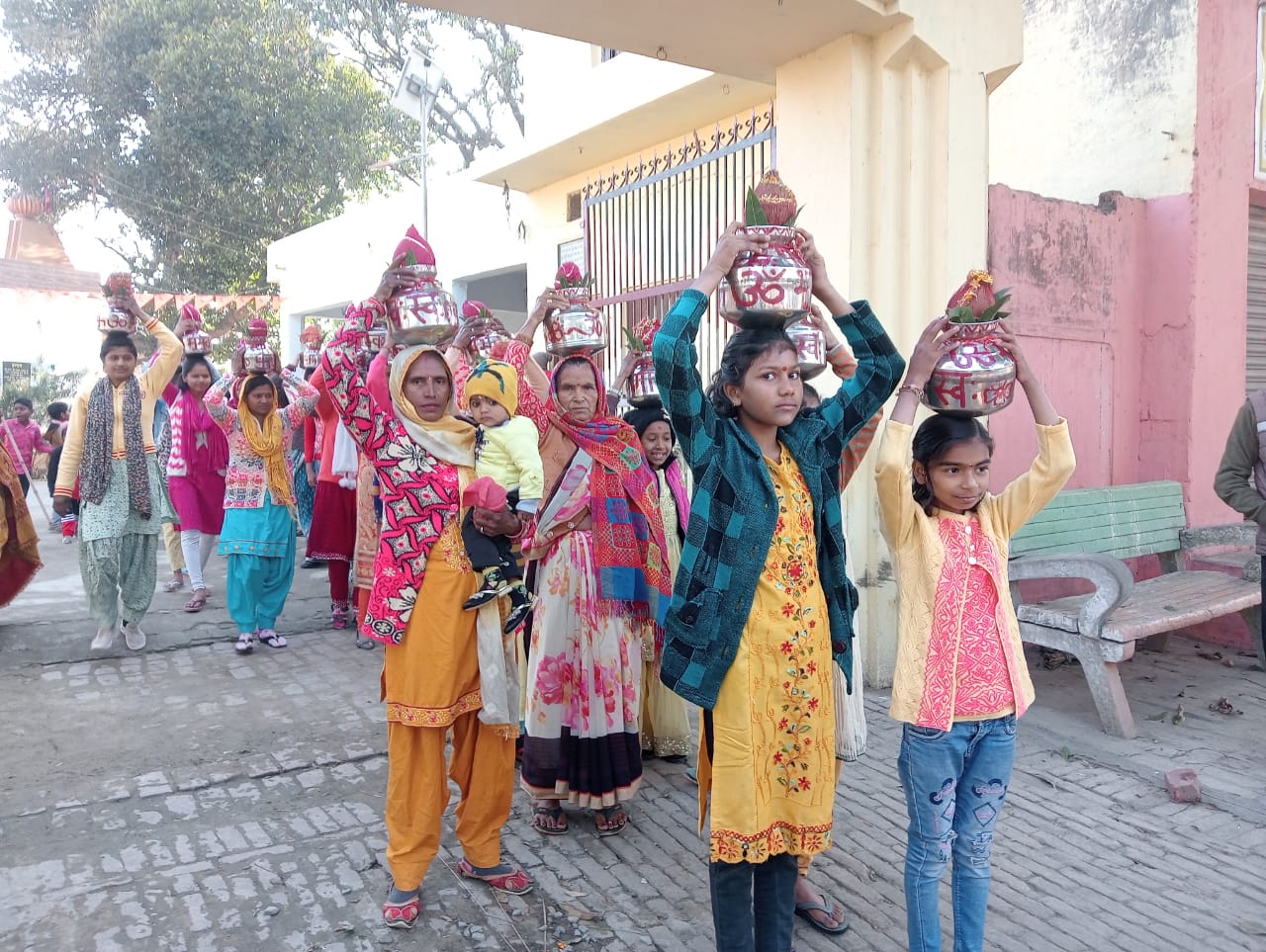 सुधरेगा नारियो जागो अपने को पहचानो जैसे नारों के साथ शोभा यात्रा को बढ़ा रही थी कलश यात्रा के पूरे पीले रंग में रंगा नजर आया और उसी के बाद पंचकुंडीय यज्ञ का आयोजन किया गया जिसमें शांतिकुंज हरिद्वार से आई टोली मे नरेश कुमार रोहतास सिंह उदयभान