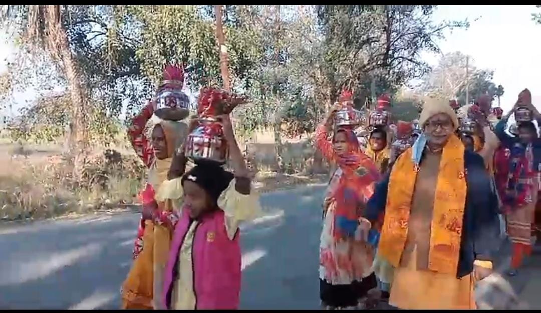 चांदपुर (परिपाटी न्यूज़) बिजनौर के चांदपुर तहसील के ग्राम सैंद्वार में शुक्रवार को सुबह आठ बजे हर वर्ष की भांति इस वर्ष भी कलश यात्रा का आयोजन किया गया चांदपुर क्षेत्र के ग्राम सैंद्वार में देवलोक आश्रम गायत्री मंदिर में गायत्री परिवार की ओर से भव्य कलश यात्रा का आयोजन किया गया गायत्री परिवार ने गांव में भव्य कलश यात्रा निकाली पूरे गांव में भ्रमण करने के उपरांत पुन : निकाले गए स्थान पर पहुंचकर यात्रा समाप्त हुई पीत ग्रस्त धारी महिलाएं कलशो को सिर पर रखकर हम बदलेंगे युग बदलेगा हम सुधरेंगे युग