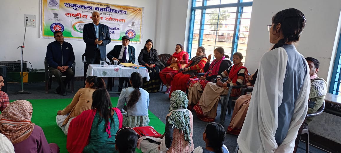 सर्वप्रथम भगवन्त ग्रुप की चेयर पर्सन डॉ०आशा सिंह ने सभी छात्र-छात्राओं को स्वस्थ रहने का आशीर्वाद दिया और कहा कि स्वस्थ शरीर में ही स्वस्थ मस्तिष्क निवास करता है ।स्वस्थ रहने के लिए हमारी जीवनचर्या नियमित होनी चाहिए ।जिससे बदलते मौसम में हमारे शरीर पर वायरस व अन्य बीमारी का आक्रमण न हो सके । डॉक्टर लाखन सिंह ने अपने संबोधन में कहा कि बदलते मौसम में होने वाली विभिन्न बीमारियों जैसे सर्दी,जुकाम, बुखार के उपचार तथा रोकथाम के बारे में विस्तार से चर्चा की तथा आयुर्वेद के महत्व के बारे में भी बताया। उन्होंने यह भी कहा स्वस्थ रहने के लिए प्रत्येक व्यक्ति को मौसम के अनुरूप खानपान तथा कपड़े पहनने चाहिए। इसके अतिरिक्त उन्होंने यह भी बताया कि कोरोना वायरस , मिर्गी , एड्स जैसी गंभीर बीमारियों के प्रति बचाव तथा रोग निदान पर भी चर्चा की इसके बाद शकुंतला महाविद्यालय के कार्यक्रम अधिकारी डॉ. मनोज कुमार ने कहा की राष्ट्रीय सेवा योजना समाज से जुड़ कर दूसरों की सेवा करने का कार्य करती है । तथा उन्होंने प्रत्येक छात्र / छात्राओं को अपने स्वास्थ्य के प्रति जागरूक रहने के लिए कहा । महाविद्यालय के प्राचार्य डॉ एच जी पाठक ने इस अवसर पर छात्र-छात्राओं को संबोधित करते हुए कहा स्वस्थ भोजन स्वास्थ्य पानी ही अच्छे स्वास्थ्य का आधार है । प्राचार्य डां . एच जी . पाठक ने बाहर से आए हुए अतिथि का धन्यवाद किया तथा अतिथि द्वारा बताए गए नियमों का पालन करने पर जोर दिया ।कार्यक्रम में शिधांशी, प्रियांशु , सुमाइला रहनुमा, डोली, सुहानी, आंचल, कामाक्षी आदि छात्र-छात्राएं उपस्थित रहे । इस कार्यक्रम को सफल बनाने के लिए उपप्राचार्य डॉ. शिवानी शर्मा , श्रीमती स्वाति शर्मा ,श्रीमती गुंजन शर्मा , कु० पारुल राव ,कु० नैंसी त्यागी, श्रीमती हर्षी अग्रवाल, श्रीमती अनुराधा, अमित कुमार, अमित चौहान नितिन कुमार का विशेष सहयोग रहा ।