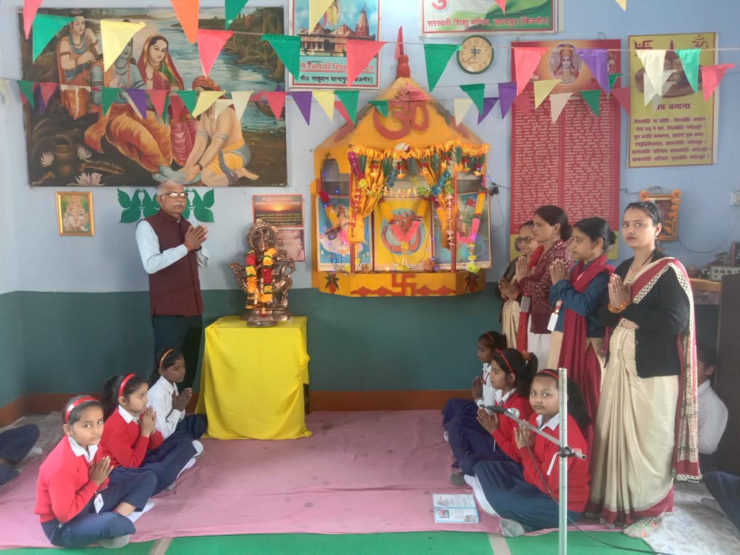 चान्दपुर बिजनौर (परिपाटी न्यूज) चान्दपुर के लाला प्यारे लाल सरस्वती शिशु मंदिर चांदपुर में कक्षा पंचम के छात्र-छात्राओं के सम्मान में विदाई (दीक्षांत)कार्यक्रम का आयोजन किया गया।प्रधानाचार्य सतेन्द्र सिंह ने माँ सरस्वती के चित्र के सम्मुख दीप प्रज्ज्वलन एवं पुष्पार्चन कर कार्यक्रम का शुभारम्भ किया। पाखी चन्द्रा, परिधि शर्मा, कृतिका पाराशर, प्रियांशी राजपूत, छवि शर्मा, अंश प्रताप ने सरस्वती वंदना, स्वागत गीत एवं भाषण आदि कार्यक्रम प्रस्तुत किये। इस अवसर पर आचार्य विकास कुमार त्यागी एवं राम बहादुर शर्मा ने छात्र/ छात्राओं का मार्गदर्शन करते हुए कहा कि सरस्वती शिशु मंदिर