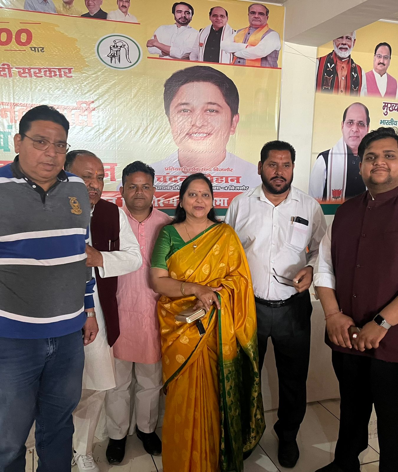 कंबोज , ज़िला वरिष्ठ उपाध्यक्ष नीतू अग्रवाल , युवा ज़िला अध्यक्ष राहुल वर्मा , युवा ज़िला मंत्री वासु अग्रवाल , ज़िला उपाध्यक्ष देवेश चौधरी , नगर अध्यक्ष बिजनौर संजू शर्मा आदि उपस्थित रहे ।