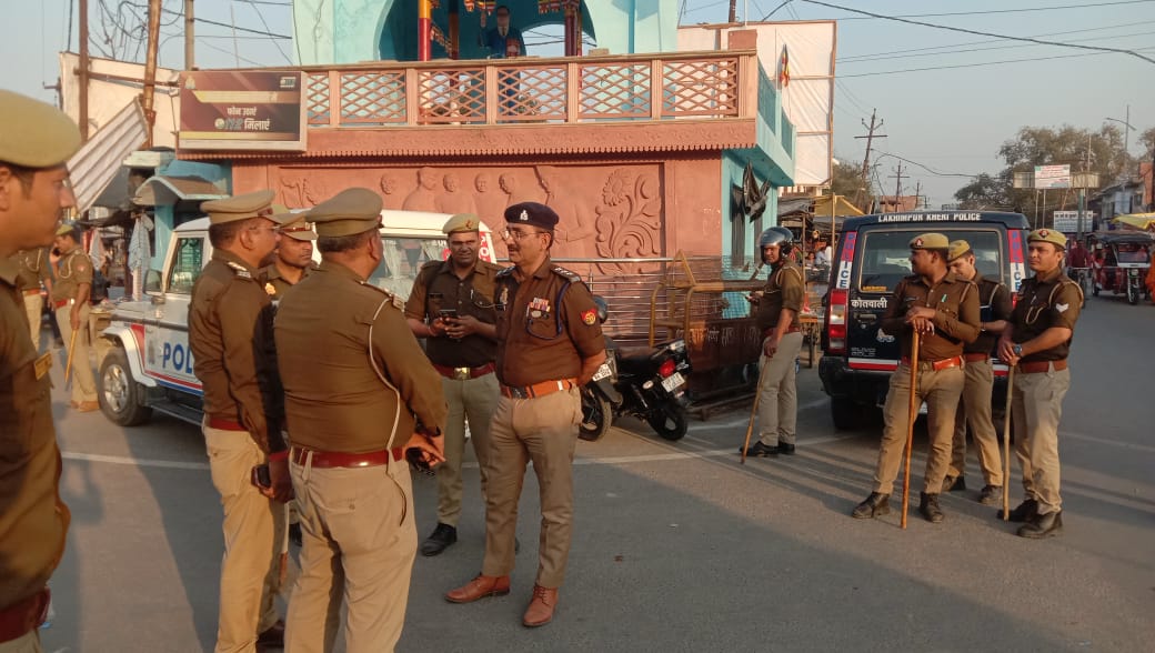 लखीमपुर खीरी परिपाटी न्यूज ।मोहम्मदी, रमजान, होली,चुनाव और सी.ए.ए.कानून के तहत पुलिस उपाधीक्षक अरुण कुमार सिह, प्रभारी निरीक्षक चंद्रशेखर सिंह, कस्बा इंचार्ज बाबूराम, उप निरीक्षक देशराज सिंह,रामचंद्र यादव,कोतवाली पुलिस सहित केंद्रीय पुलिस बल के जवान के साथ साथ नगर पुलिस का भ्रमण नगर के प्रमुख मार्गो से होता हुआ होली घमार के रूट का भी भ्रमण किया, पुलिस उपाध्यक्ष