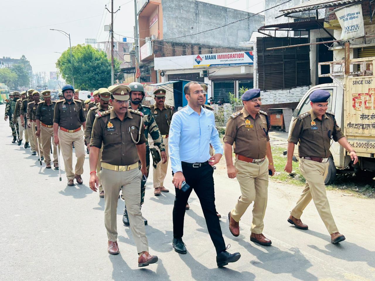इसी क्रम में दिनांक 16.03.2024 को अपर पुलिस अधीक्षक पश्चिमी द्वारा क्षेत्राधिकारी पलिया प्रभारी निरीक्षक थाना पलिया, अर्ध सैनिक बल व पुलिस की संयुक्त टीम के साथ कस्बा मोहम्मदी में फ्लैग मार्च किया गया।