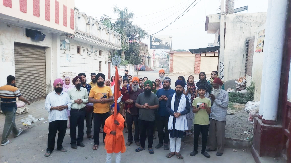 प्रांत 5बजे नगर में सिक्ख पंथ के प्रतिक निशान साहिब की अगुवाई में सिक्ख समुदाय द्वारा गुरुबाणी कीर्तन करते हुए प्रभातफेरी निकाली गई।