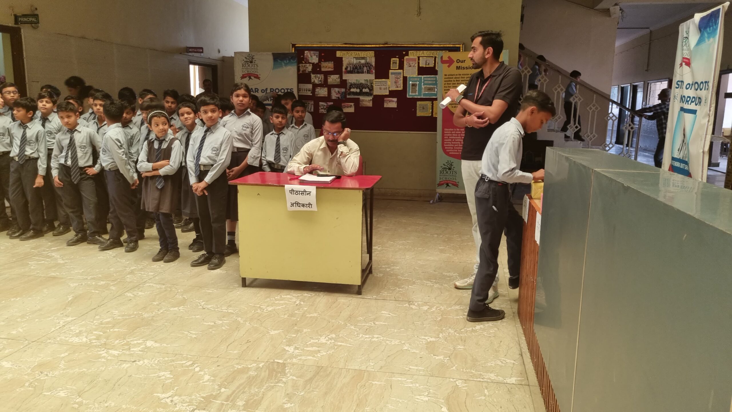 लिए स्कूल के रिसेप्शन हॉल को मतदान केंद्र का रूप दिया तथा विभिन्न “कक्षाओं में मॉनीटर” के पद हेतु लोकतांत्रिक प्रणाली के अंतर्गत वैलेट पेपर के माध्यम से वोट डालने की पूरी प्रक्रिया को प्रदर्शित किया गया।