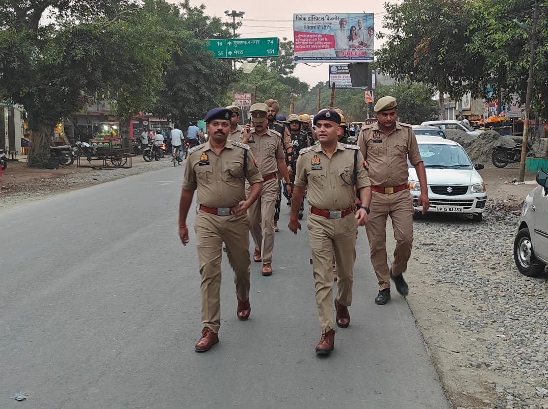 चान्दपुर बिजनौर ( परिपाटी न्यूज) जिला बिजनौर के कस्बा चांदपुर में पुलिस अधीक्षक जनपद बिजनौर द्वारा स्थानीय पुलिस बल के साथ कस्बा चांदपुर में अपराध नियंत्रण शांति एवं कानून व्यवस्था तथा आमजन में सुरक्षा का भाव जागृत करने के उद्देश्य से मुख्य मार्गों बाजार एवं अन्य भीड़ वाले स्थानों पर पैदल गस्त की गई।