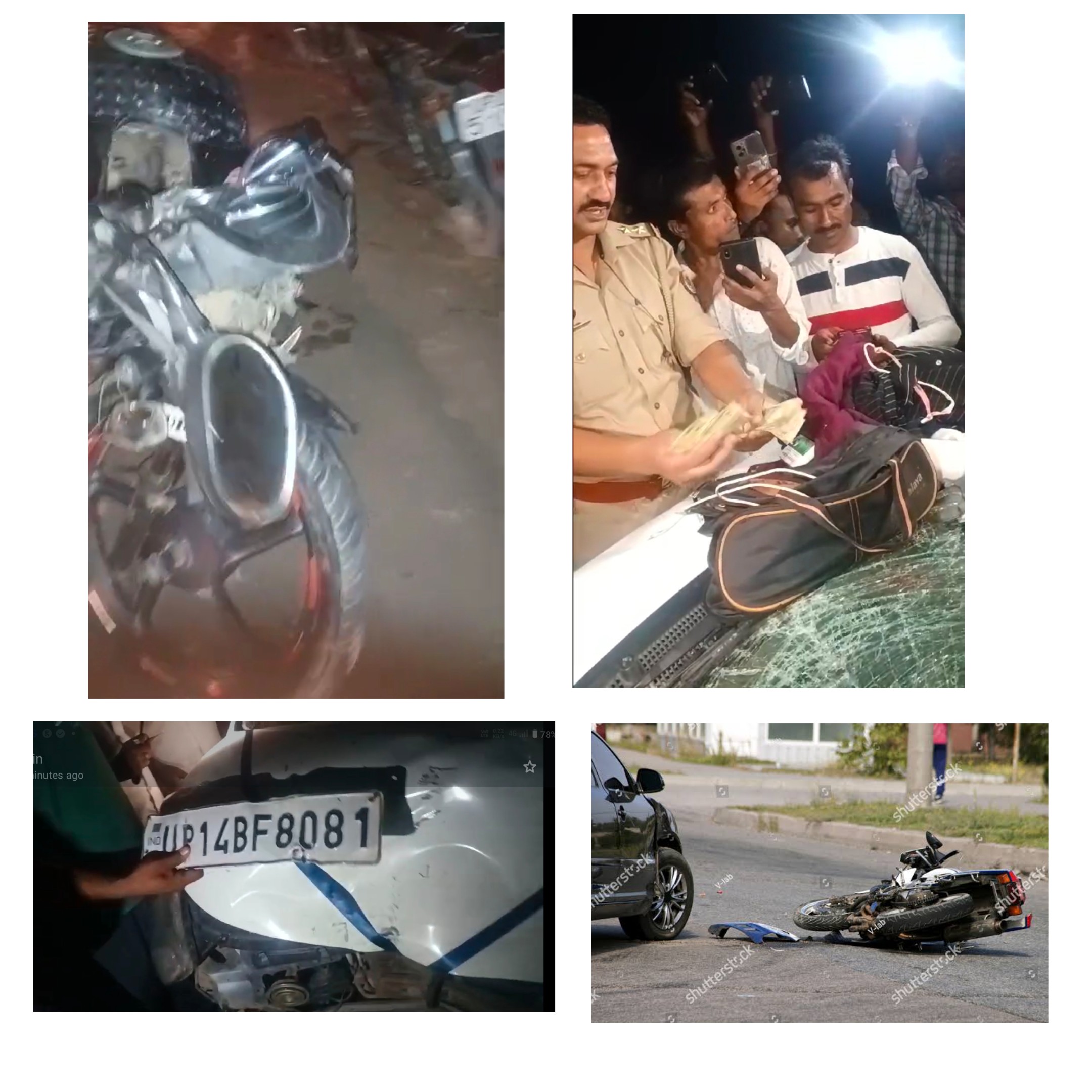 विक्रम अपनी बाइक से ताजपुर जा रहे थे। ताजपुर की और से गलत साइड से आ रही चौपहिया वाहन ने बाइक मे टक्कर मार दी। जिसमे प्रार्थी के भतीजे की बाइक क्षतिग्रस्त हो गयी तथा प्रार्थी के भतीजे की दोनों जांघों की हड्डियां टूट गयी और उसके सर में भी काफी गंभीर चोटें आई है। प्रार्थी का भांजा भी बुरी तरह घायल हो