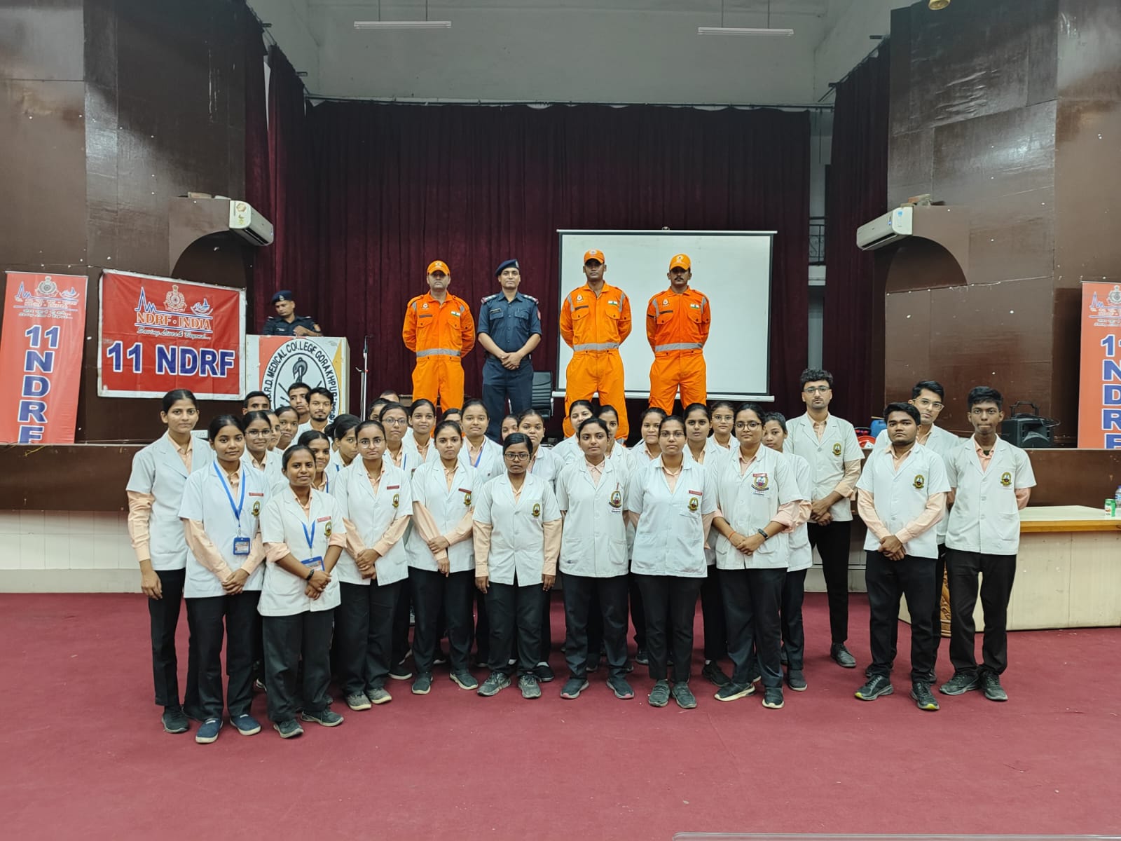 पड़ती है। एनडीआरएफ के जवानों ने लोगों को आपदा के समय घायलों को बिना संसाधनों के किस प्रकार प्राथमिक उपचार, अस्पताल ले जाने के लिए एक ( कैपेसिटी बिल्डिंग प्रोग्राम) के जरिए बाढ़ के दौरान किन -किन उपकरणों का प्रयोग कर लोगो को कैसे बचाया जा सके । यह भी बारीकी से समझाया इसमें आग जैसी आपदाओं में घायल हुए व्यक्तियों को अस्पताल से पूर्व चिकित्सा के बारे में बताया गया और साथ ही आपदाओं में प्रयोग किए जाने वाले रेस्क्यू तकनीकी फंसे हुए लोगों को निकालना उन्हें प्राथमिक उपचार देने के बारे में बताया गया इस अवसर पर बाबा राघव दास मेडिकल कॉलेज के चीफ गेस्ट डॉक्टर रामकुमार जायसवाल एवं नर्सिंग कॉलेज की प्रिंसिपल डॉ अलका सक्सेना, डॉक्टर नानक चंद एवं बीआरडी मेडिकल कॉलेज एवं नर्सिंग कॉलेज समस्त नर्सिंग स्टूडेंट मौजूद रहे।