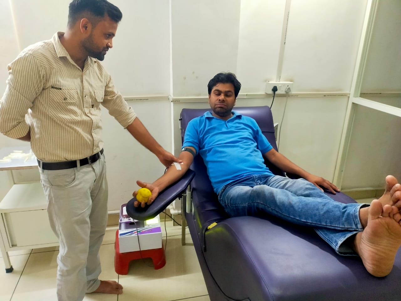 चांदपुर बिजनौर ( परिपाटी न्यूज)जिला बिजनौर के तहसील चांदपुर। राष्ट्रीय प्रेस क्लब चांदपुर जन सेवा के लिए हर समय हर व्यक्ति के लिए तैयार रहता है। इसी क्रम मे आज बुधवार को राष्ट्रीय प्रेस क्लब चांदपुर के संस्थापक आफाक अंसारी ने बिमारी से पीड़ित एक मरीज को अपना रक्त दान कर जान बचाने की कोशिश की है। श्रीआफाक अंसारी ने बताया कि उनके पास एक गरीब व असहाय तथा विकलांग व्यक्ति आया और उसने बताया कि मेरे बेटे की तबीयत खराब है और मैं ब्लड