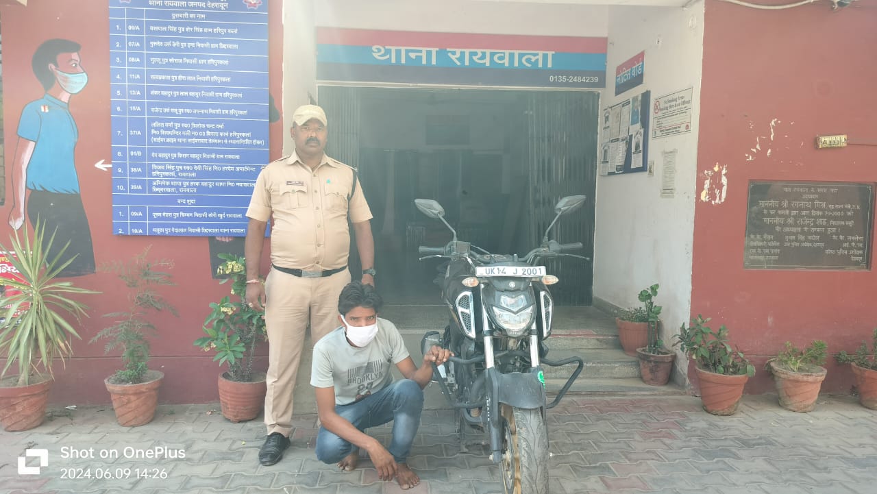 रायवाला परिपाटी न्यूज। दिनांक 08.06.24 को उपेन्द्र यादव पुत्र पुरूषोत्तम लाल नि० कलगाँव वामनवास थाना गाडाखेडा तहसील बुहाना जिला झुन्झुनू राजस्थान हाल नि0 C/O बालेन्द्र सिंह खाण्ड गांव नं0 1 रायवाला लिखित सूचना कि दि0 8.6.24 की साय लगभग 16.00 बजे मकान के पोर्च में खडी वादी की यामाह मो०साO F-Z-S संख्या UK14J-2001 रंग काला को अज्ञात चोर द्वारा पकड लिया चीता रायवाला