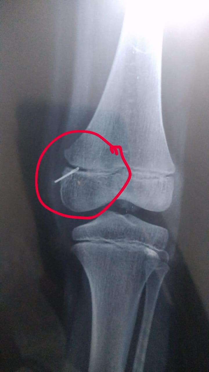 पैर की पट्टी खोलने व एक्सरे कराने के दौरान पता चलने पर अंदर से सुई निकलने पर परिजन अचंभित रह गए। पुलिस से शिकायत कर कार्रवाई की मांग की गई है।