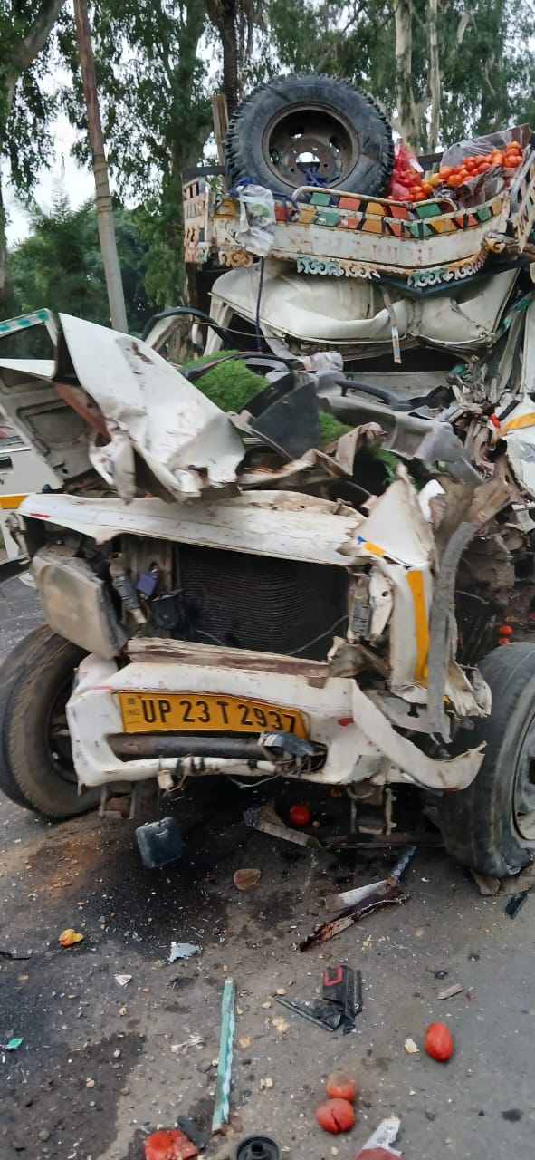 अमरोहा की ओर से आ रहे कैंटर ट्रक HR 67 D 4683 से भीषण भिड़ंत हो गई। पिक-अप गाड़ी के हादसे में परखच्चे उड़ गए जिसमें गांव मिठनपुर थाना मंडी धनौरा निवासी भूदेव सिंह व उसके पुत्र मनीष की मृत्यु हो गई जबकि गाड़ी चालक धीरज सिंह, महेंद्र पुत्र नत्थू सिंह, खेमचंद पुत्र कमल घायल हो गए, घटनास्थल पर पहुंची पुलिस ने मृतकों के शवों को पोस्टमार्टम के लिए भेज दिया