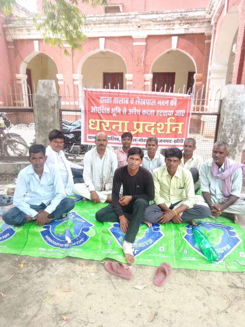 तो वहीं पर उत्तर प्रदेश के लखीमपुर खीरी जिले की मोहम्मदी तहसील के ग्राम मुडागालिव के आदेश जोशी, हरी राम, संजीत कुमार, लाल बहादुर, राम सहय, दिनेश पाल, लखीमपुर बिलोबी हाल में अतिक्रमण से कब्जा हटाने के संबंध में धरने पर तीन दिनों से बैठे हैं आप को बता दें कि आदेश कुमार जोशी कहीं शिकायत करते-करते पैरों की चप्पल घिस गई तो शरीर का पानी सूख गया लेकिन मोहम्मदी के अधिकारियों पर कोई भी असर ना हुआ आखिर अतिक्रमण करने वाले पर ऐसा कौन सा पावर ऐसा कौन सा सहयोग प्राप्त है जिसके चलते अवैध अतिक्रमण को हटाने के लिए लोगों को न्याय पाने के लिए धरनो पर बैठना पड़ता है आपको बताते चलें धरने पर बैठे लोगों को आज तीसरा दिन बीतने जा रहा है लेकिन अभी तक धरने पर बैठे लोगों का कोई भी निष्कर्ष नहीं निकाला जा सका धरने पर बैठे आदेश कुमार जोशी से फोन पर जब जानकारी की गई तो आदेश कुमार जोशी ने जानकारी देते हुए बताया इससे पहले भी हम लखनऊ इको गार्डन में तीन दिन धरने पर बैठकर वहां के अधिकारियों ने भरोसा देखकर धरना खत्म कर दिया और या भरोसा दिया था अतिक्रमण संबंधित आप जो शिकायत कर रहे हैं उसका समाधान हो जाएगा लेकिन आदेश कुमार जोशी को सिर्फ और सिर्फ भरोसा ही मिला उसके सिवा कुछ नहीं अब आदेश कुमार जोशी ने ठाना है जब तक किसी प्रकार का कोई समाधान नहीं होता है तब तक हम सभी लोग धरने से नहीं हटेंगे इसके लिए चाहे हमें कितने दिन बिताने पड़े चाहे महीना