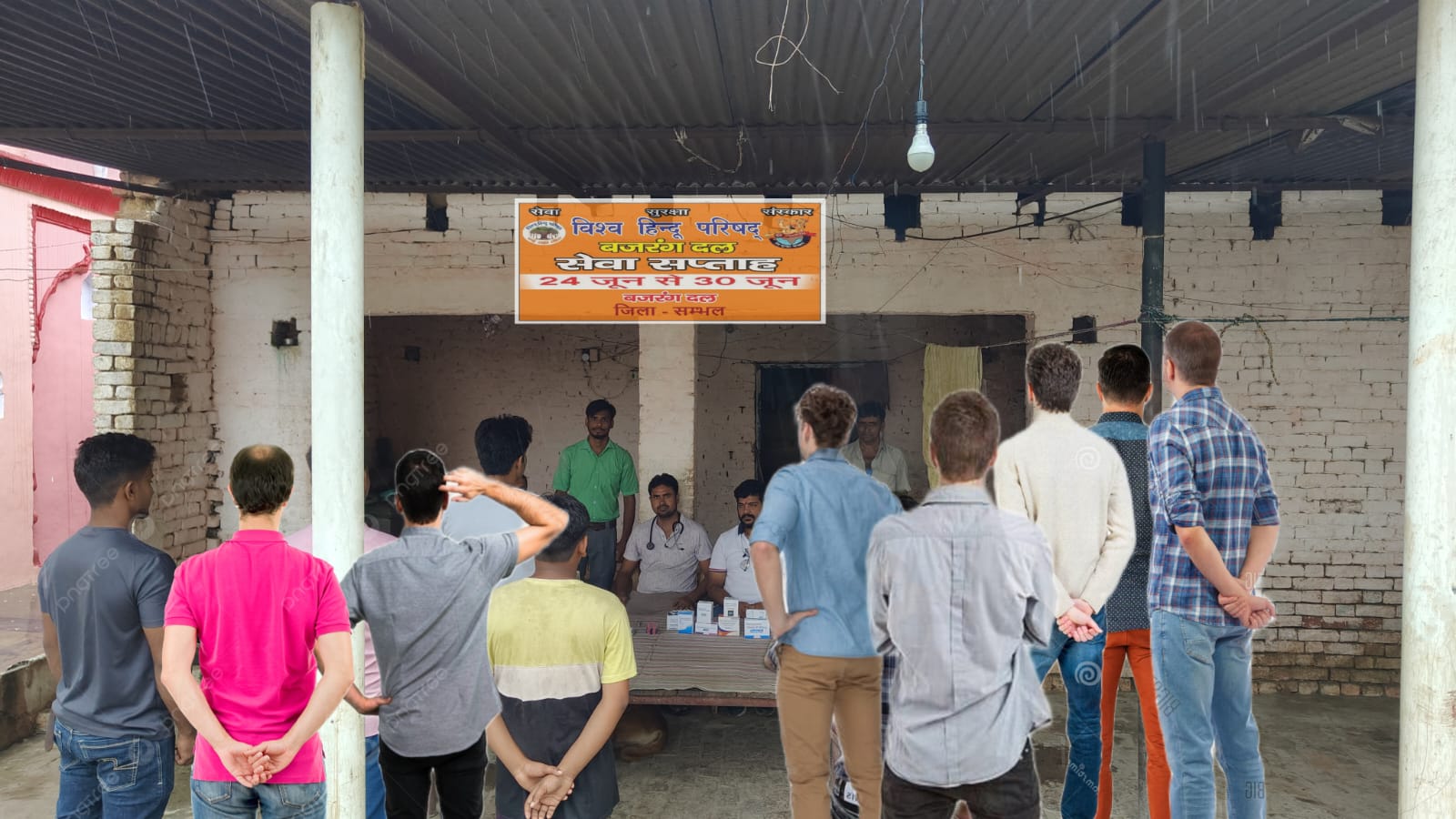संभल(परिपाटी न्यूज़)। ग्राम भुलावई के शिव मंदिर में सुबह 10 बजे से बजरंग दल के तत्वाधान में सेवा सप्ताह का आयोजन किया गया। जिसमे एक मेडिकल कैंप का आयोजन हुआ। कैंप में डॉक्टर पुष्पेंद्र जी लगभग 150 मरीजों का शुगर और ब्लड प्रेशर चेक किया