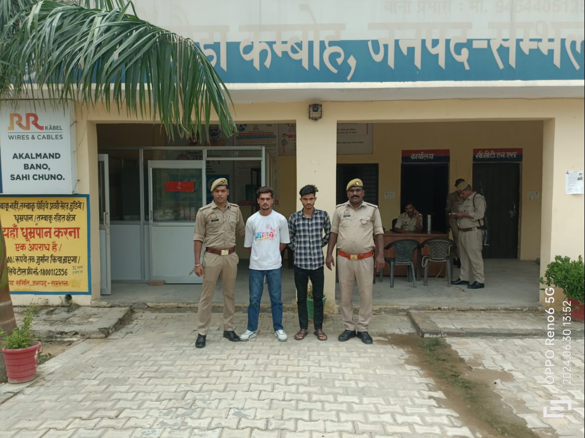 संभल (परिपाटी न्यूज) पुलिस अधीक्षक जनपद संभल कुलदीप सिंह गुनावत व अपर पुलिस अधीक्षक श्रीशचंद के कुशल निर्देशन व क्षेत्राधिकारी असमोली संतोष कुमार व प्रभारी निरीक्षक रेणु सिंह थाना ऐचोडा कंबोह पुलिस जनपद संभल के नेतृत्व मे अपराधियों के विरुद्ध चलाए जा रहे धर पकड़ अभियान के तहत थाना ऐचोडा कंबोह पुलिस टीम द्वारा दिनांक 30.06.2024 को गस्त/चेकिंग के दौरान एवं मुखबिर खास की सूचना पर दो बांछित अभियुक्त अरबाज पुत्र मुर्तजा निवासी ग्राम सलेमपुर सलार उर्फ हाजीपुर थाना ऐचोडा कंबोह जिला संभल व शानू पुत्र हनीफ निवासी ग्राम गालबपुर थाना