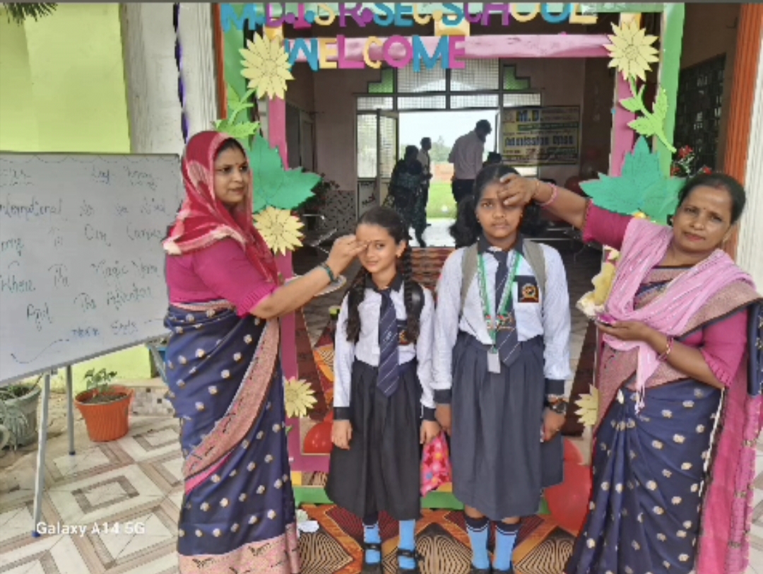 जिसमें विद्यालय प्रांगण को सुसज्जित कर विद्यार्थियों को तिलक व पुष्प भेंट कर विद्यालय में स्वागत किया गया।