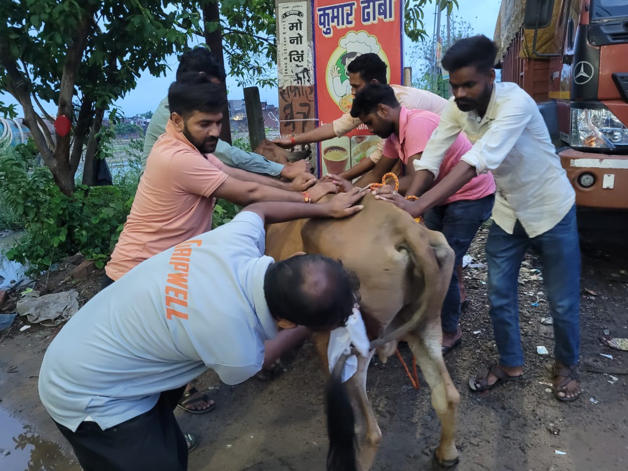 कांठ,मुरादाबाद ( परिपाटी न्यूज़)विश्व हिंदू परिषद बजरंग दल के कार्यकर्ताओं को सूचना मिली कि भूड़ मंदिर आश्रम के सामने पुष्पराज प्लाटिंग में एक गाय घायल अवस्था पड़ी थी जिसमें कीड़े पड़ चुके थे जिस पर सूचना पाकर विश्व हिंदू परिषद जिला प्रमुख मोनू बिश्नोई मौके