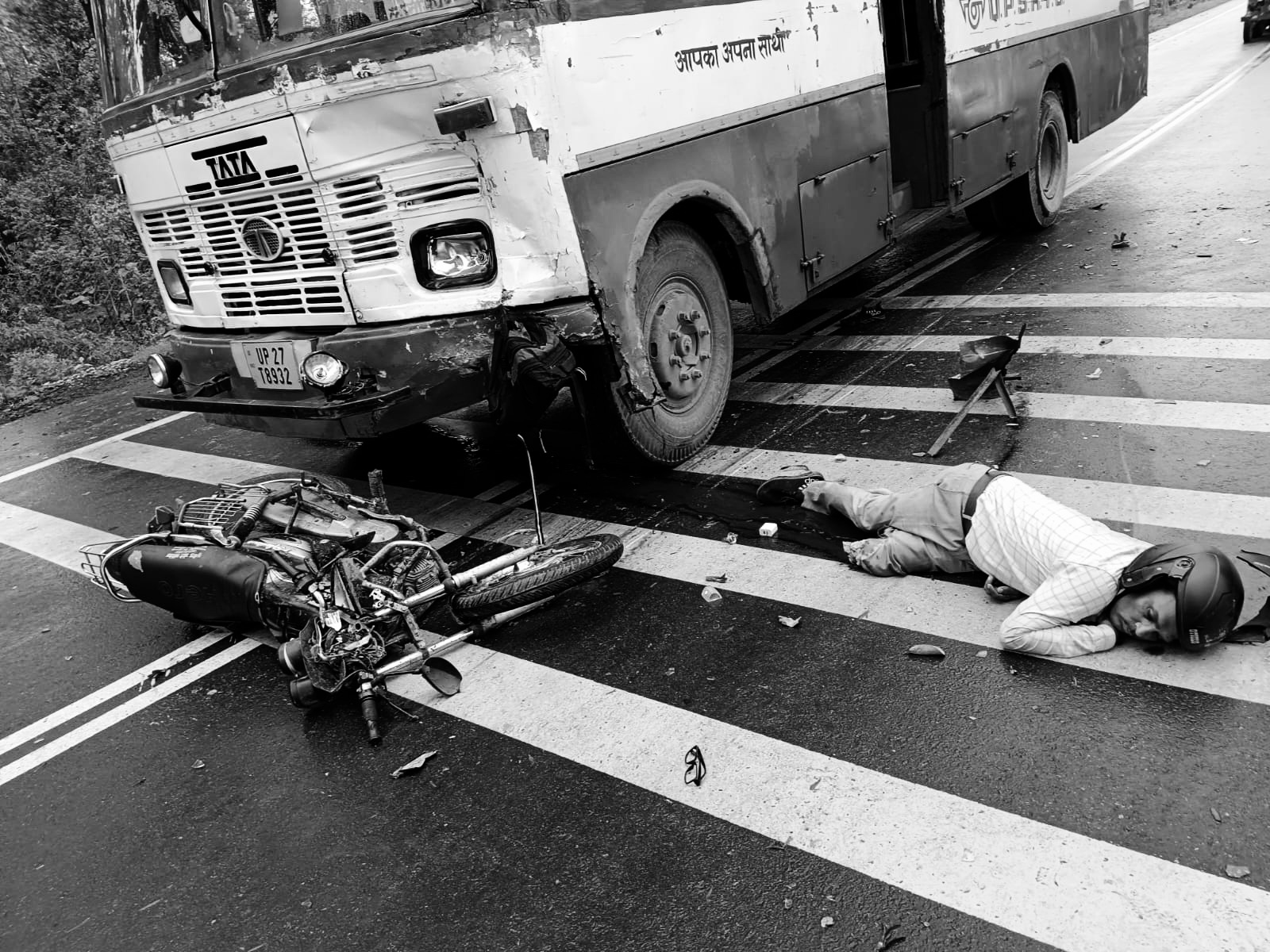 बेहजम लखीमपुर खीरी परिपाटी न्यूज। रेहरिया चौकी क्षेत्र के अन्तर्गत गोला मोहम्मदी रोड पर कठिना पुल के पास मोड़ पर हुआ हादसा लगभग सुबह सात बजे शाहजहांपुर डिपो की बस जिसका नंबर यूपी 27 टी 8932 व मोटरसाइकिल स्प्लेंडर जिसका नंबर यूपी 27 एन 8743 की हुई जोरदार टक्कर में बाइक सवार के दोनों पैर कट जाने से हुई मौत रोडवेज चालक एक्सीडेंट हो जाने के बाद मौके से हुआ फरार और सूत्रों से प्राप्त