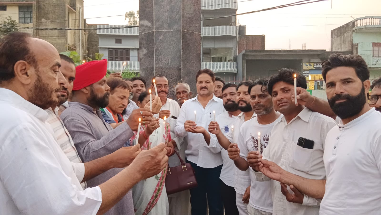 कामना करते हैं कि ईश्वर ऐसे जा वाजों कि आत्मा  को अपने श्री चरणों में स्थान दें और इनके परिवार को  दुख सहन करने की शक्ति दे सभी कांग्रेसियों ने शहीदों के लिए शोक व्यक्त किया और कैंडल मार्च निकालते हुए शहीद स्थल रिकी सिंह पर पहुंचे जहां शहीदों की याद में मोमबत्ती लगाई गई  कार्यक्रम में जिला महासचिव सरदार गुरमुख सिंह दीवान ब्लॉक अध्यक्ष असलम चौधरी नगर अध्यक्ष निजामुद्दीन नगर अध्यक्ष युवा सानू मीर कमलेश कुमार, मोहम्मद सलीम, हुकम सिंह, नजाकत अल्वी, मोहम्मद रफत,शराफत अली, मुनेश त्यागी आदि मौजूद रहे।