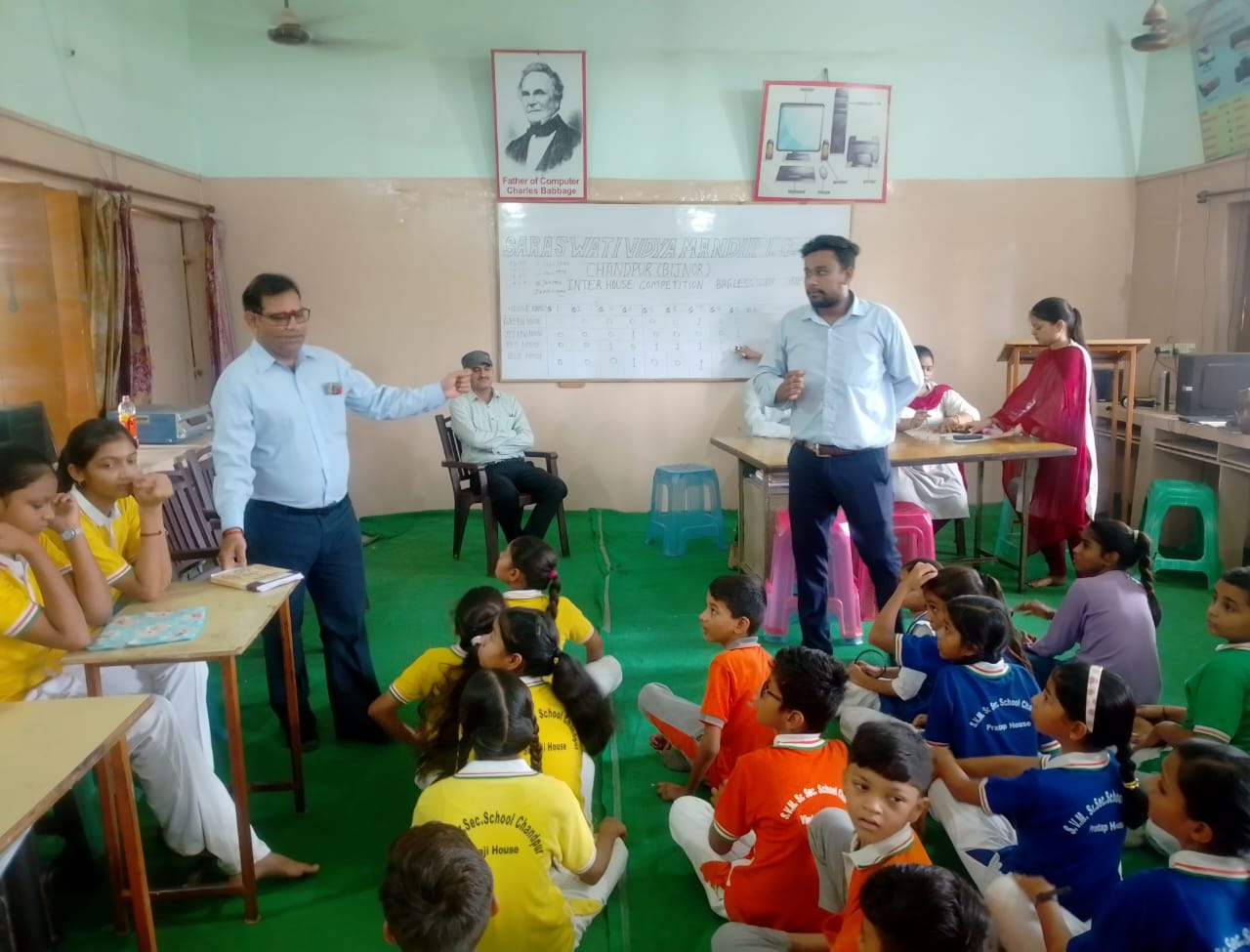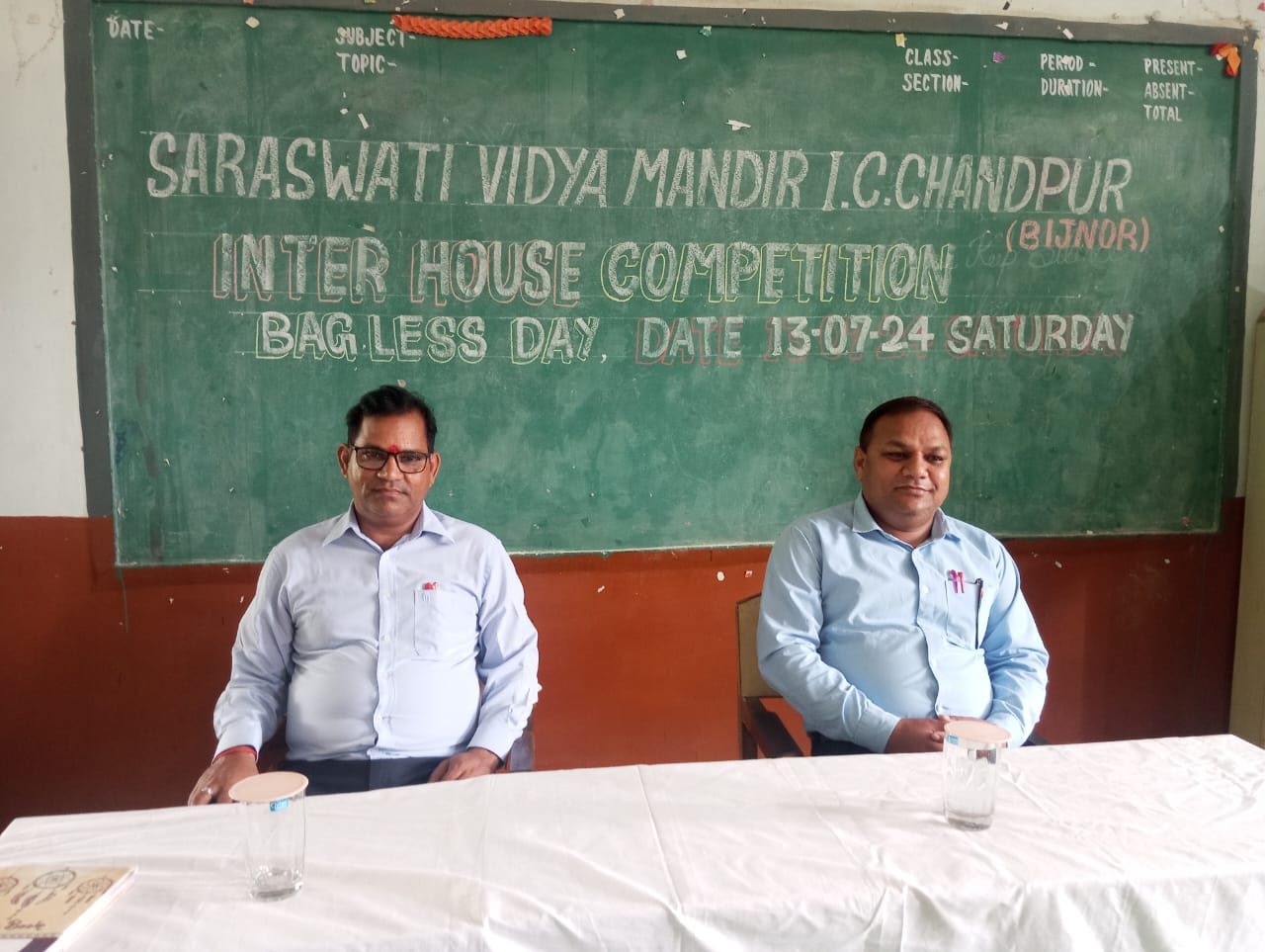 चांदपुर(परिपाटी न्यूज)। विद्या भारती अखिल भारतीय शिक्षा संस्थान से संबंध सरस्वती विद्या मंदिर इंटर कॉलेज चांदपुर बिजनौर में Bagless Day( INTER HOUSE COMPETITION) का आयोजन बड़े हर्षोल्लास से किया गया l दिनांक 13.7.2024, दिन शनिवार को सरस्वती विद्या मंदिर इंटर कॉलेज चांदपुर में इंटर हाउस कंपटीशन का शुभारंभ मां सरस्वती के समक्ष अतिथि बंधुओं द्वारा दीपप्रज्वलन एवं पुष्पार्चन कर किया गया। कार्यक्रम के मुख्य अतिथि अशोक कुमार (पूर्व कौषाध्यक्ष- सरस्वती विद्या मन्दिर इंटर कॉलेज, चाँदपुर व सह जिला संयोजक- पर्यावरण) तथा पंकज (प्रचारक- राष्टीय स्वयं सेवक संघ ) की उपस्थिति रही।
