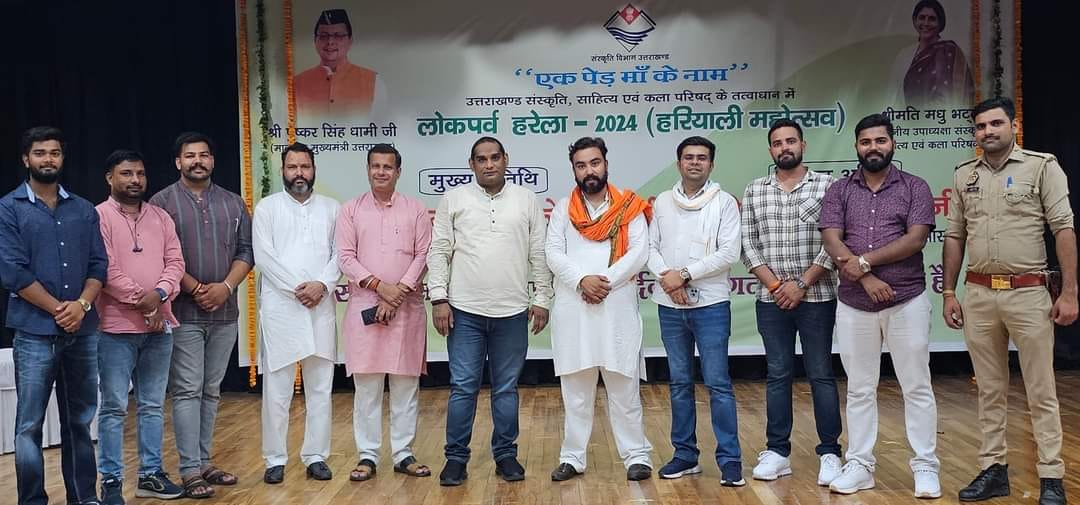 देहरादून परिपाटी न्यूज। उत्तराखंड प्रदेश के देहरादून में एक पेड़ मां के नाम और उत्तराखंड के लोक पर्व हरेला पर उत्तराखंड संस्कृति विभाग द्वारा आयोजित कार्यक्रम में मुख्य अतिथि के रूप में उत्तराखंड के पूर्व मुख्यमंत्री महाराष्ट्र के पूर्व राज्यपाल भगत सिंह कोशियारी और माननीय राज्य सभा सांसद एवं प्रदेश अध्यक्ष भाजपा महेन्द्र भट्ट और पद्मश्री पुरस्कार से सम्मानित बसंती नेगी आदि गण मान्य लोग उपस्थित हुवे ,इस शानदार