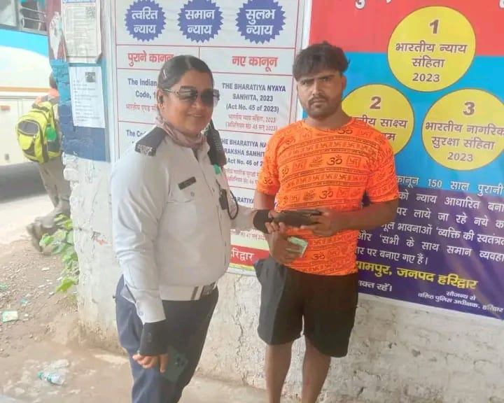 गई और पर्स में मिले कागजातों के आधार पर किसी तरह से भोले का नंबर प्राप्त किया गया और भोले राहुल पुत्र महेन्द्र निवासी ग्राम रोहनात भिवानी हरियाणा को ट्रैफिक कांस्टेबल शशि रावत के माध्यम से चौकी बुलाकर पर्स भोले के सुपुर्द किया गया।