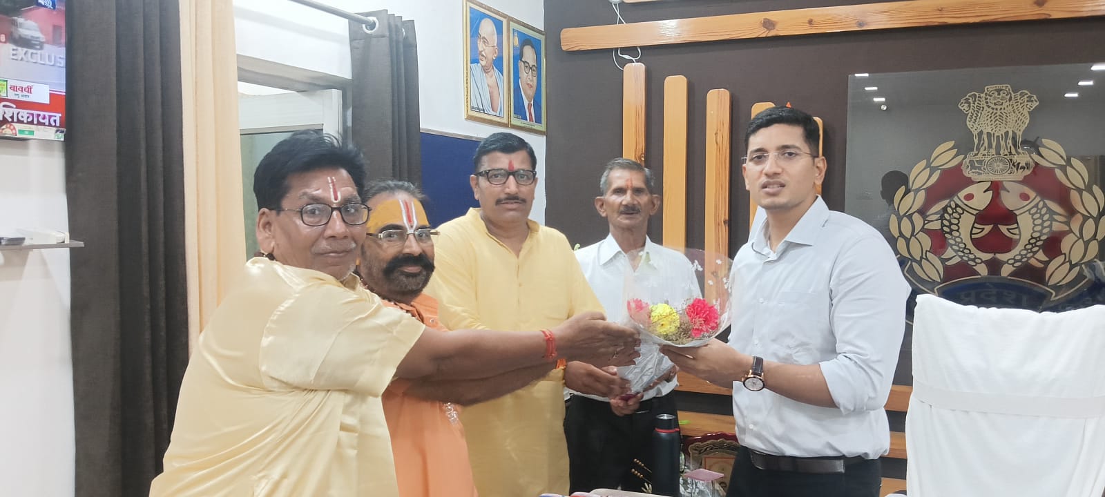 अध्यक्ष कृष्ण वीर फौजी व नरेश कुमार शर्मा संरक्षक एवं दिनेश कुमार शर्मा तथा मुनेश चन्द शर्मा इन सभी लोगों ने गुलदस्ता पुलिस अधीक्षक अभिषेक झा जनपद बिजनौर को भेंट किया और कुछ वार्तालाप भी की गई है।