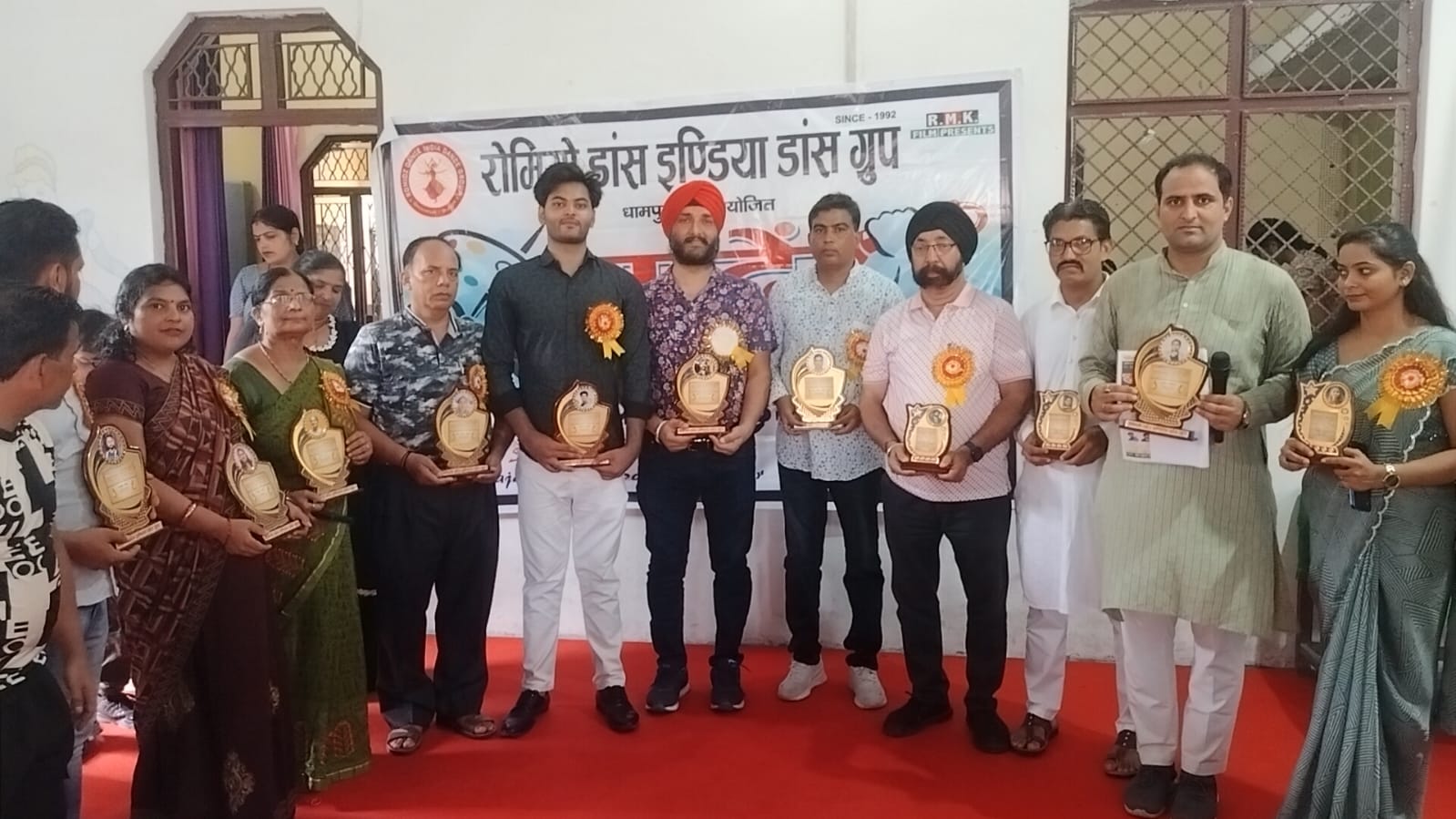 गया, कार्यक्रम में विशेष प्रस्तुति देने हेतु परि गोयल एवं भूमिका रानी को सम्मानित किया गया, कार्यक्रम में आये हुए अतिथि अनीता चौहान, बबीता रानी, डॉ० अमित चौहान, गुरदीप सिंह चावला, महबूब शेख, डॉ० देवेंद्र कुमार, श्यान शमशी आदि अतिथियो को आयोजको द्वारा स्मृति चिन्ह भेंट कर सम्मानित किया गया, कार्यक्रम का संचालन प्रदेश स्तरीय सम्मनित शुभम वालिया ने किया, कार्यक्रम में रोमियो मयूर एवं अनुपम शर्मा द्वारा नागिन सा रूप है तेरा गाने पर विशेष प्रस्तुति दी गई, कार्यक्रम में आये अतिथि डॉ० अमित चौहान द्वारा ग्रुप के अध्यक्ष दिनेश चंद्र अग्रवाल नवीन, दीप सृजन कांवेंट स्कूल की प्रबंधक अनीता चौहान, एवं सरगम संगीत कला केंद्र के अध्यक्ष सरदार मनजीत सिंह सलूजा को राम मंदिर व रामलला का चित्र भेंट किया गया, कार्यक्रम को सफल बनाने में ज्योति टंडन, संगीता रानी, डॉ० आयुश कुमार, हीना शर्मा, कल्पना वर्मा, सचिन, अल्का, निधि, नेहा, सोनम, अरूण, आदि लोगो का सहयोग रहा, कार्यक्रम के अंत में रोमियो डांस इंडिया डांस ग्रुप के अध्यक्ष दिनेश चंद्र अग्रवाल नवीन ने सभी का आभार व्यक्त किया