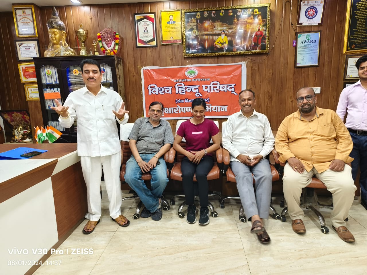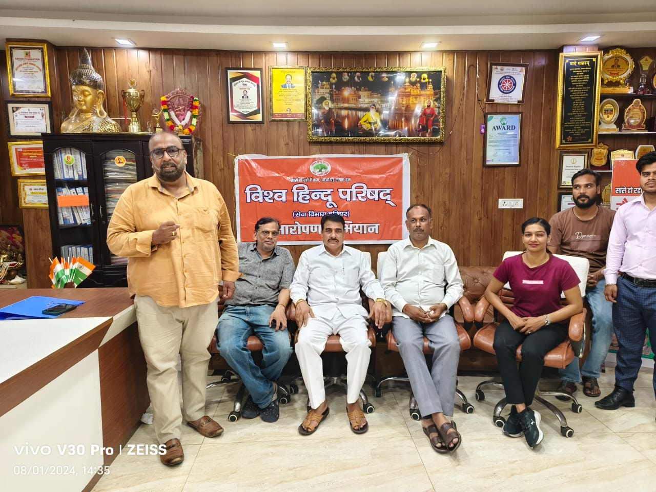 हरिद्वार परिपाटी न्यूज। विश्व हिंदू परिषद सेवा विभाग की वृक्षारोपण विषय पर गोष्ठी रानीपुर मोड़ पर प्रेमचंद सैनी वरिष्ठ समाजसेवी की अध्यक्षता व कुमारी विदुषी के संचालन में संपन्न हुई मुख्य अतिथि राजन आहूजा विशिष्ट अतिथि धर्मेश कुमार रहे कुमारी विदुषी ने सभी अतिथियों का परिचय कराया विश्व हिंदू परिषद सेवा विभाग के जिला टोली सदस्य सौरभ सक्सेना जिला सेवा प्रमुख रवि चौहान ने गोष्ठी का शुभारंभ कराया गोष्टी मैं राजन आहूजा ने अपने विचार व्यक्त करते हुए कहा कि बरसात के दिनों में पौधारोपण बहुत आवश्यक है एक व्यक्ति अपने जीवन में 500 पेड़ों का प्रयोग करता है 1 वर्ष में एक बच्चे की पढ़ाई पर 35 किलो