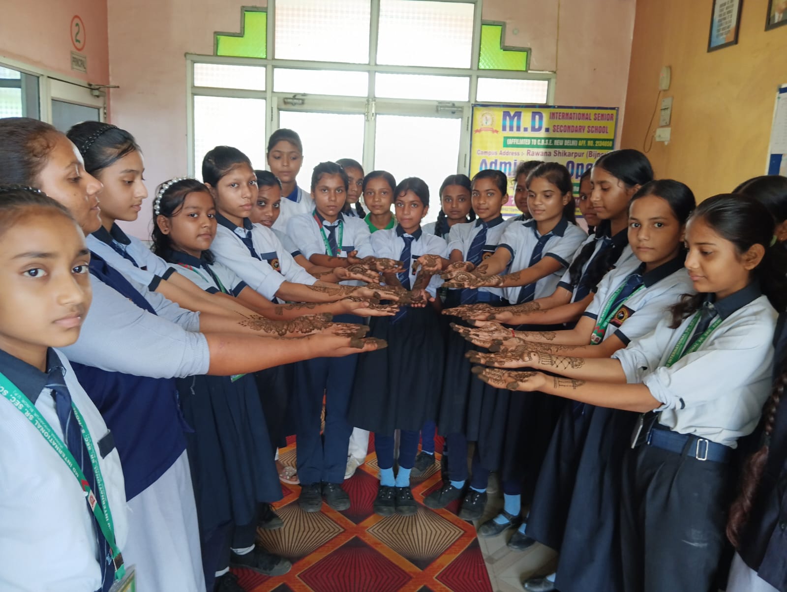 हाउस ( ब्लू हाउस ), ऐ. पी. जे. अब्दुल कलाम हाउस ( येलो हाउस ) तथा सरदार वल्लभ भाई पटेल हाउस ( ग्रीन हाउस ) की छात्राओं ने बढ़-चढ़ कर भागीदारी की। सभी छात्राओं ने संयम व सतर्कता के साथ अपने अपने हाउस को विजेता बनाने के लिए उत्कृष्ट प्रदर्शन किया। छात्राओं के मंत्र – मुग्ध करने वाले मेहंदी के डिजाइन देखकर निरीक्षक आश्चर्य-चकित हो गए। कार्यक्रम का समापन विजेता हाउस के नामों की घोषणा तथा विजेता हाउस को पुरस्कृत कर किया गया।
